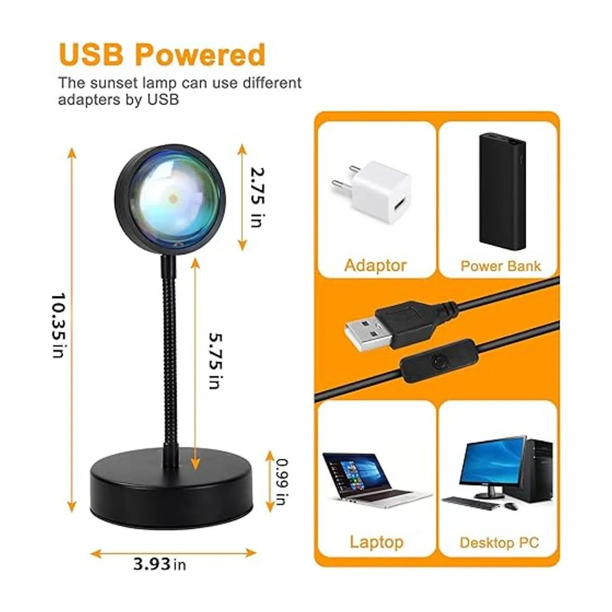 Multifunción: el proyector de puesta de sol funciona con USB y está equipado con luces LED de 10 W, más brillante y más larga vida útil que las cuentas de lámpara de pie normales. Puedes obtener la sensación de una puesta de sol junto al mar en tu sala de estar o balcón sin conducir a la playa en un frío día de invierno.