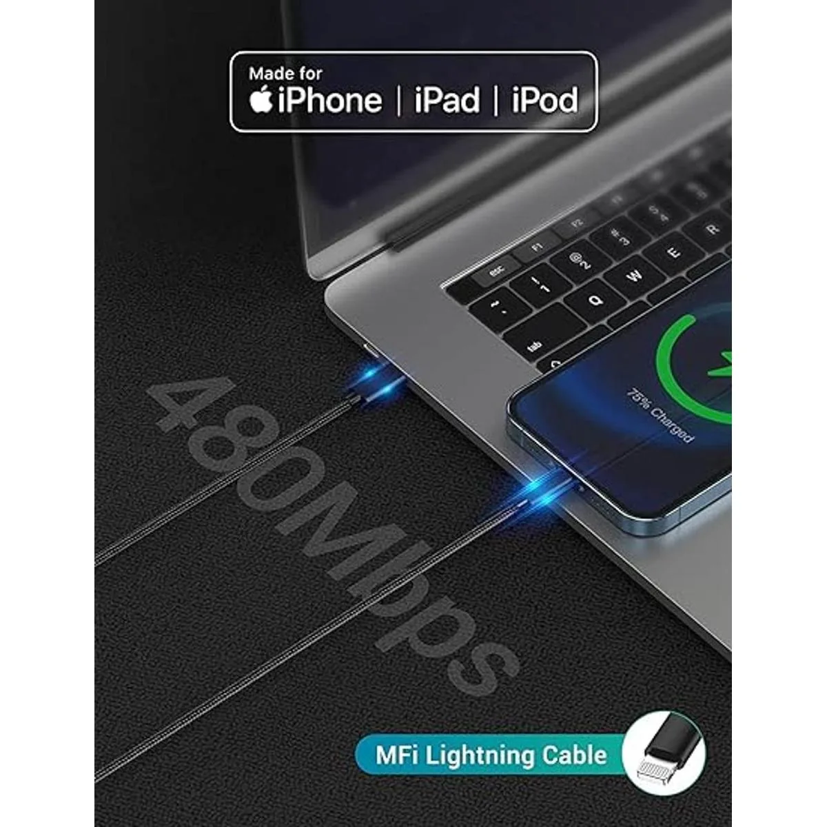 Longitud extra larga de 6 pies Cable de carga rápida para iPhone de 6 pies con nuestro cargador PD de 20 W para acceder a la carga rápida para iPhone 14 13 12 11 Pro Max SE 2020 X XR XS Max 8 Plus; iPad Pro de 10.5 pulgadas; iPad Air3 de 10.5 pulgadas; iPad mini5 de 7.9 pulgadas; Airpods Pro. Este cargador USB C para iPhone también se carga para 7 6s Plus 5 5c 5s SE en una velocidad de carga original.