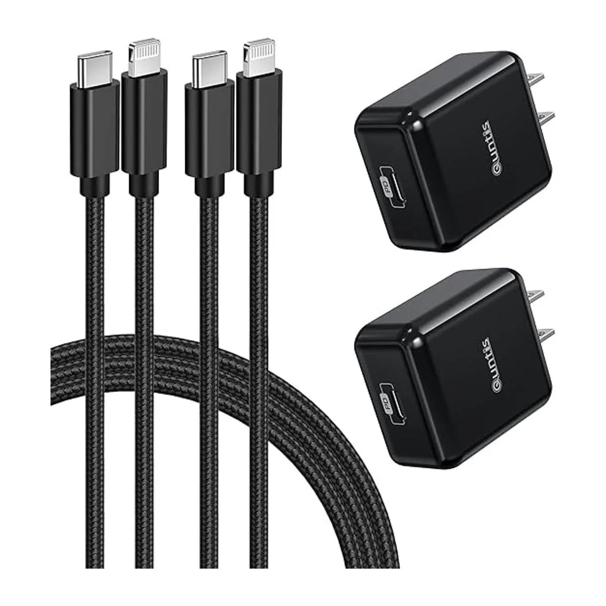 Quntis Cargador rápido para iPhone, 2 unidades, adaptador de cargador rápido para iPhone de 20 W con cable USB C a Lightning de 6 pies de carga rápida para iPhone 14, 13 Mini Pro Max 12, 11 XS Max XR X, iPad Pro, AirPods Pro, color negro
