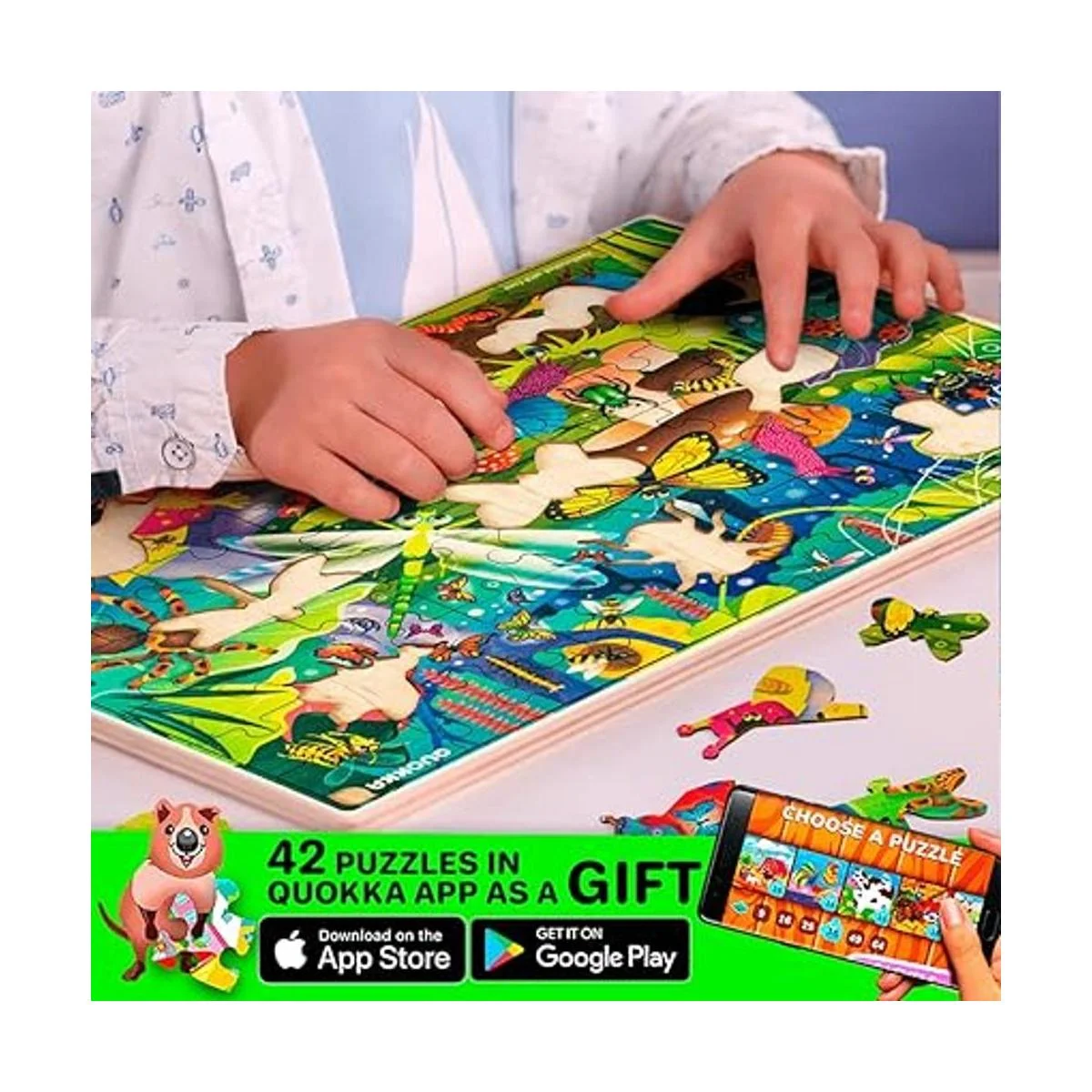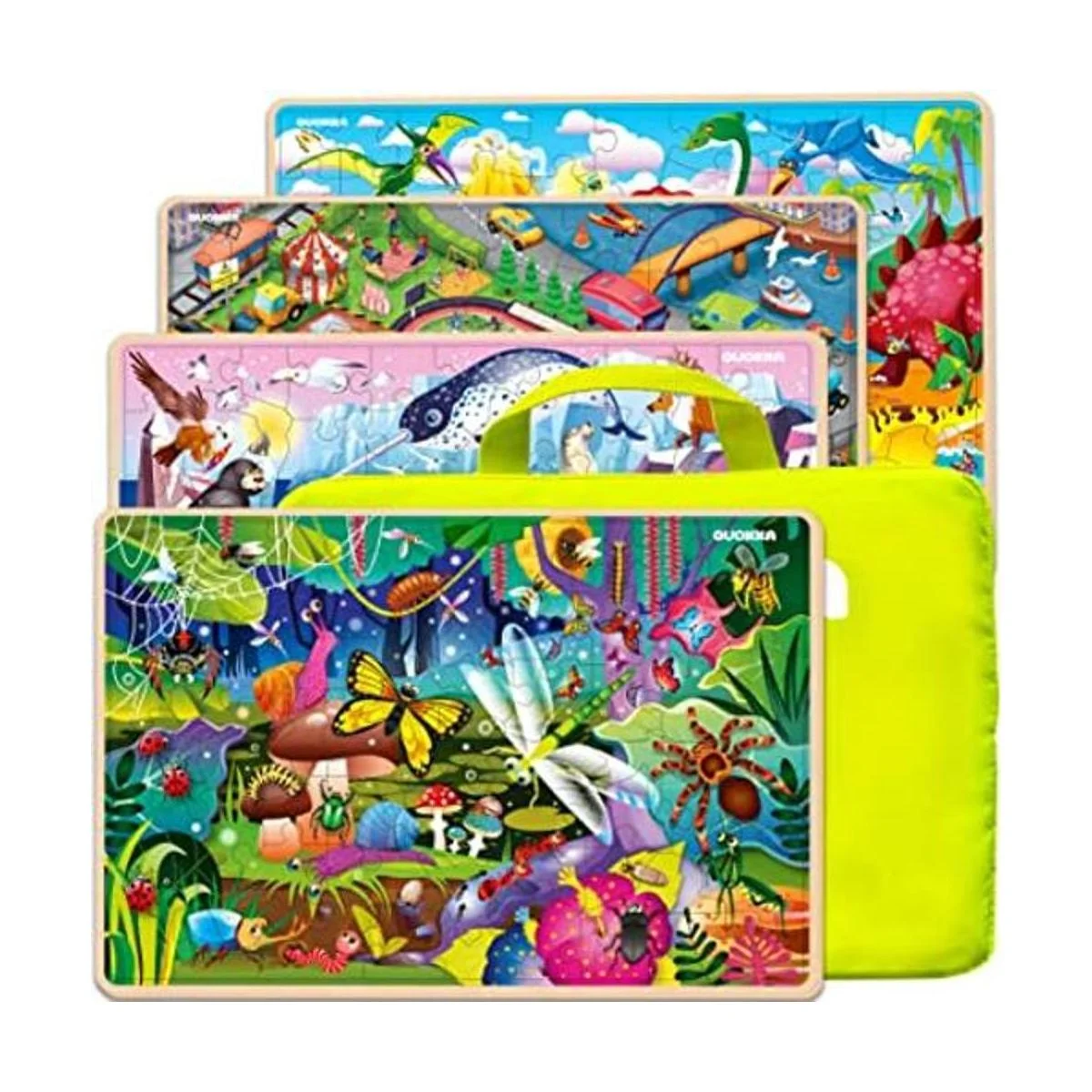 QUOKKA Rompecabezas de madera para niños de 4 a 8 años, juego de 4 rompecabezas de 60 piezas para niños de 3 a 5 años, juego de rompecabezas de aprendizaje con animales, dinosaurios, ciudad para 6 a 8 a 10 años, juguetes de madera de regalo para niños y niñas
