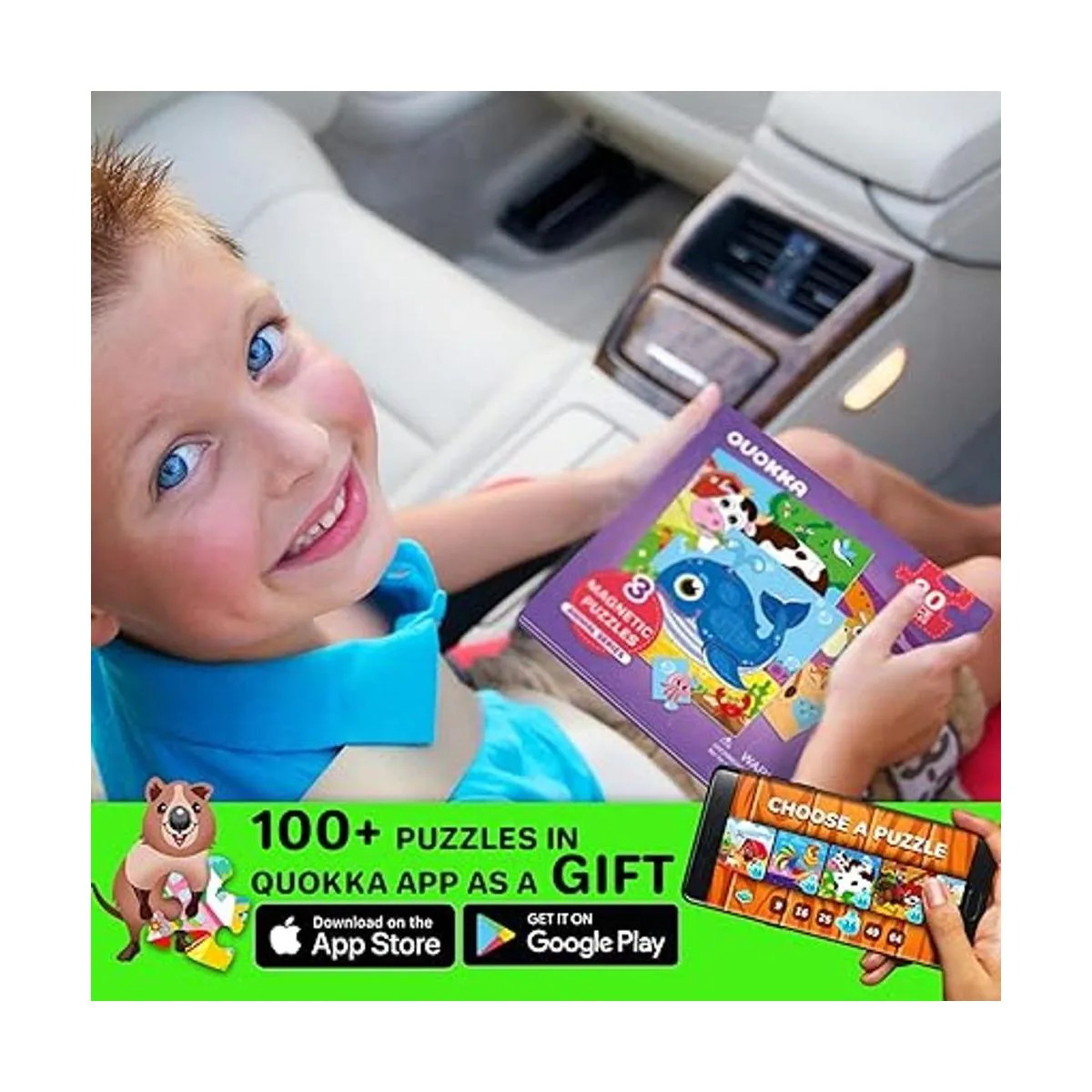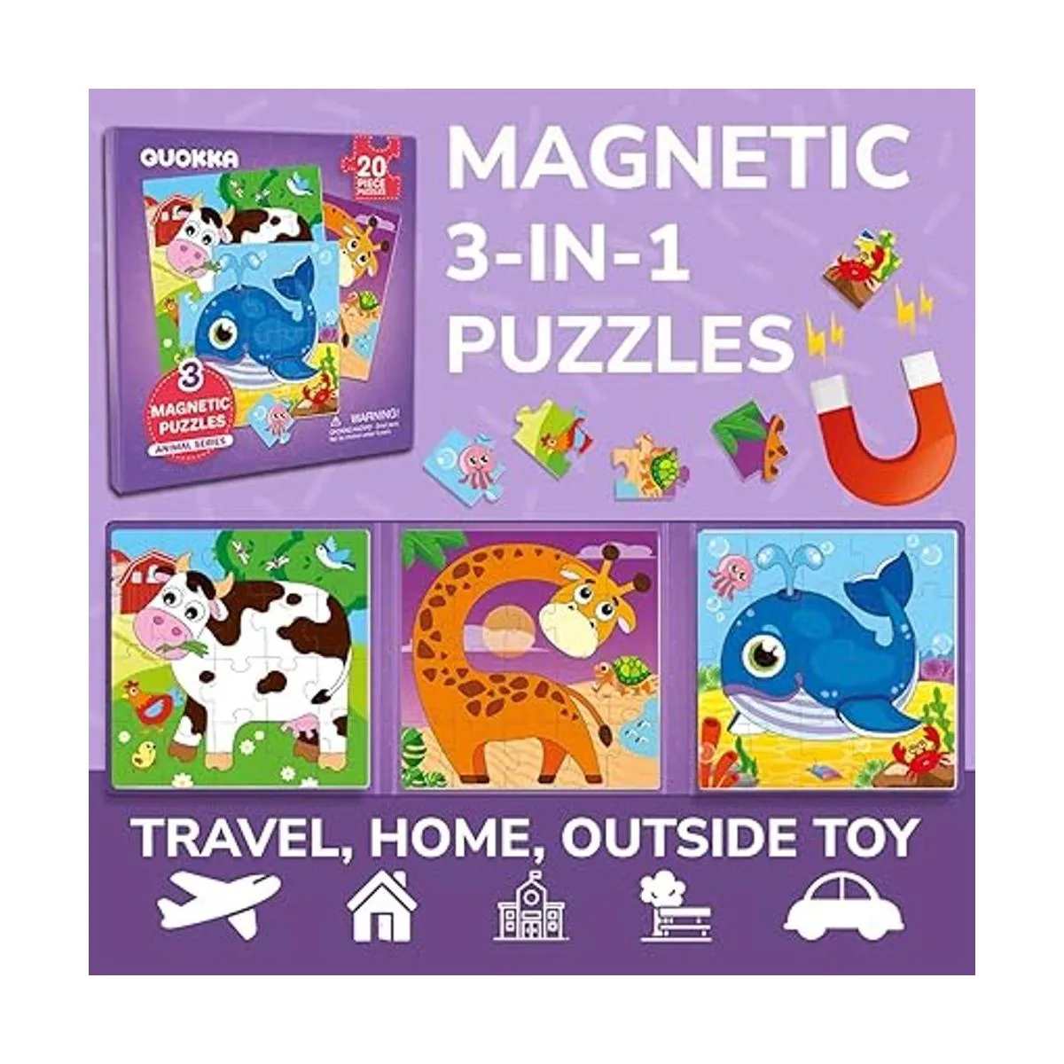 QUOKKA Rompecabezas magnéticos para niños de 1 a 3 años, juego de viaje de 24 piezas para actividades de automóvil para niños de 2 a 4 años, juguete de animales para niños y niñas de 3 a 5 años, regalo magnético de aprendizaje para viajes por carretera
