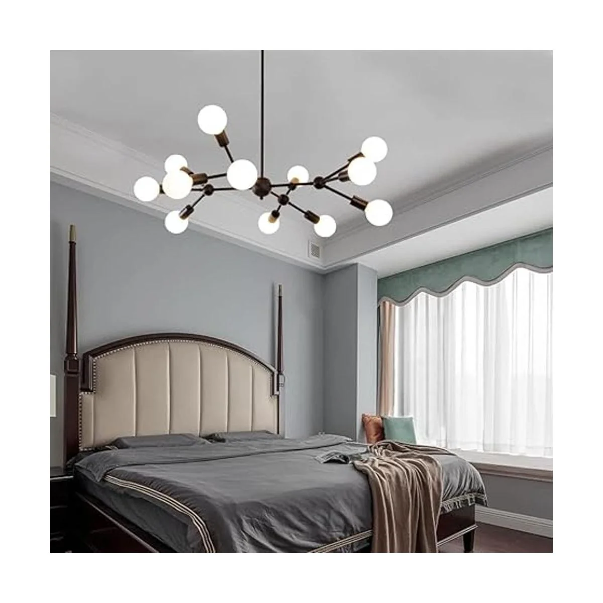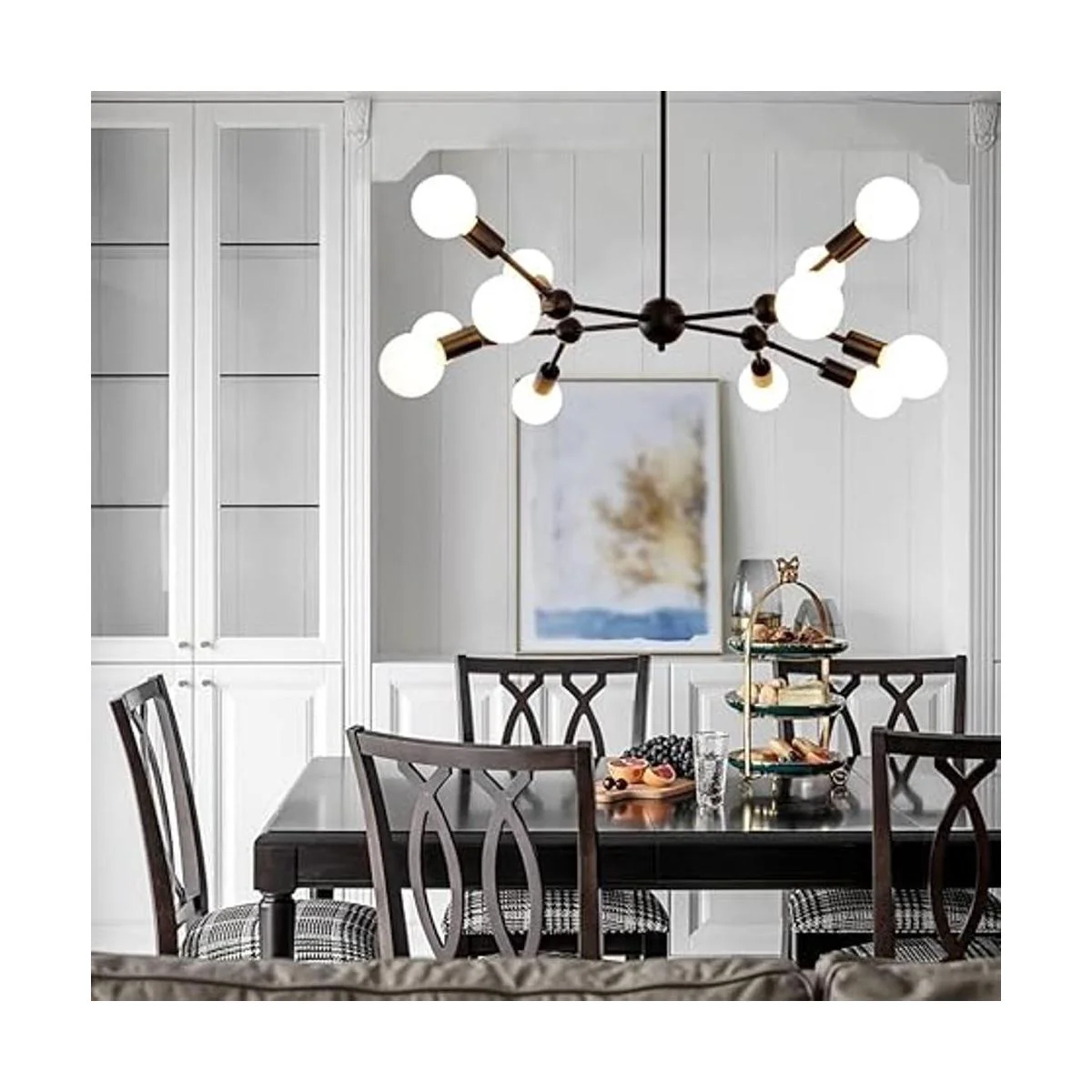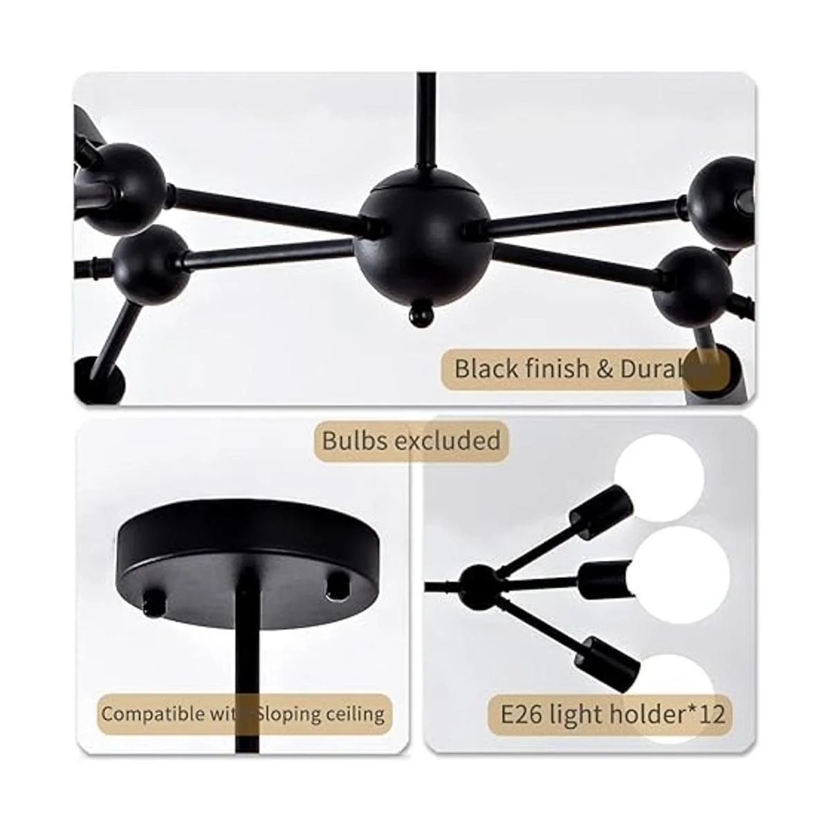 Quoobe Moderna lámpara de araña Sputnik negra, 12 luces de techo de metal, iluminación colgante para dormitorio, estudio, sala de estar, comedor, cocina, oficina, restaurante, escalera