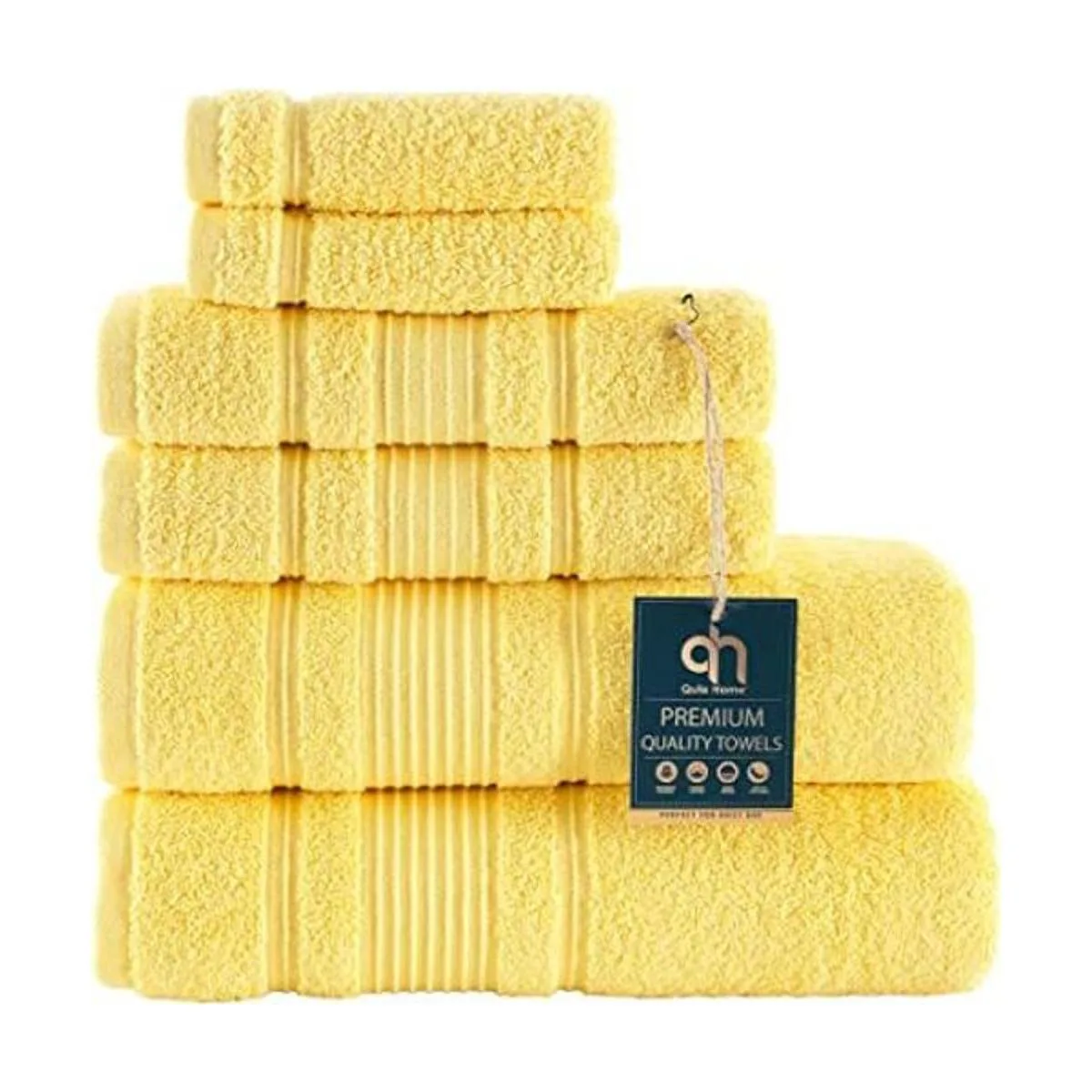 Qute Home Juego de 6 toallas de baño, 100 algodón turco de alta calidad, toallas turcas suaves y absorbentes, el juego incluye 2 toallas de baño, 2 toallas de mano y 2 toallas amarillo