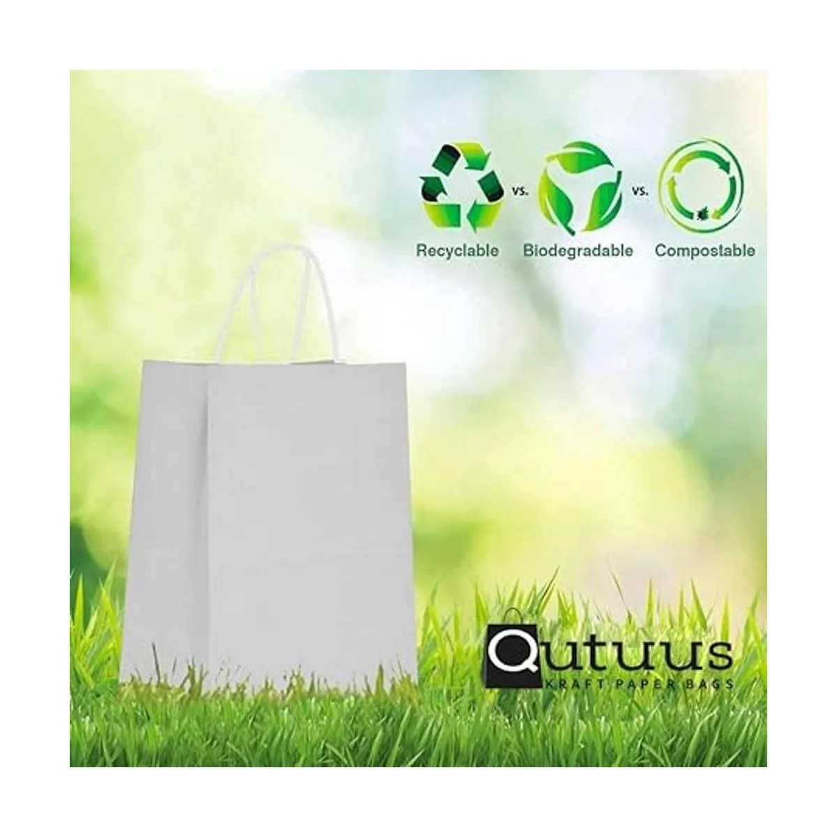 Qutuus 100 bolsas de regalo de papel kraft blanco a granel, bolsas de regalo de papel kraft a granel, bolsas de regalo de papel kraft a granel, bolsas de compras blancas, bolsas de fiesta, bolsas de papel kraft blancas, bolsas de papel reciclables, bolsas de regalo blancas con asas a granel
