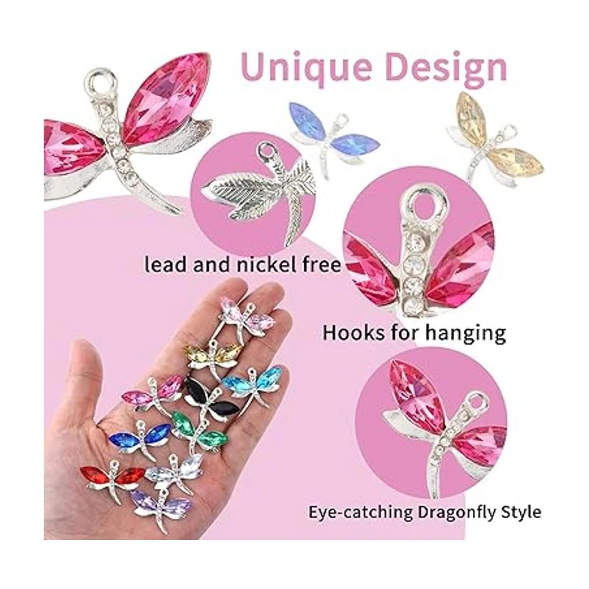 Diseño único: los dijes colgantes de esmalte de metal de diamante están hechos en estilos de libélula, muy hermosos y llamativos, serán suministros ideales para collares, pulseras, aretes, proyectos de álbumes de recortes, llavero, adornos, cadena de suéter, tobillera, accesorios decorativos para teléfonos celulares, etc.