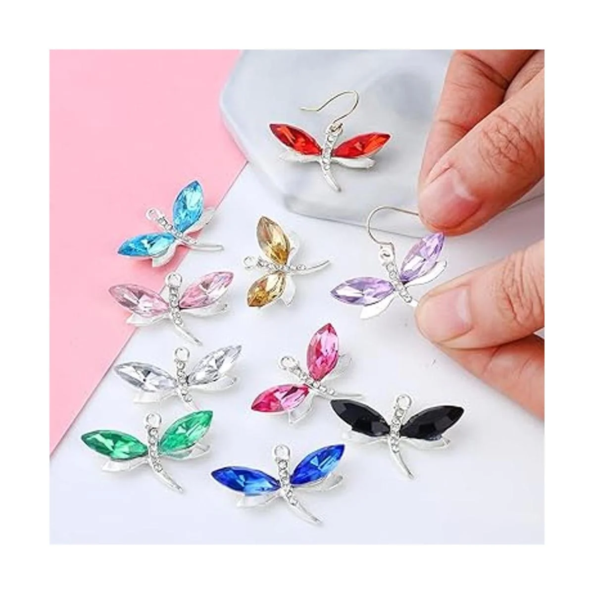 El paquete incluye: 20 dijes de libélula en 10 colores, y cada color incluye 2 piezas, suficiente color y cantidad para tus demandas diarias de bricolaje.