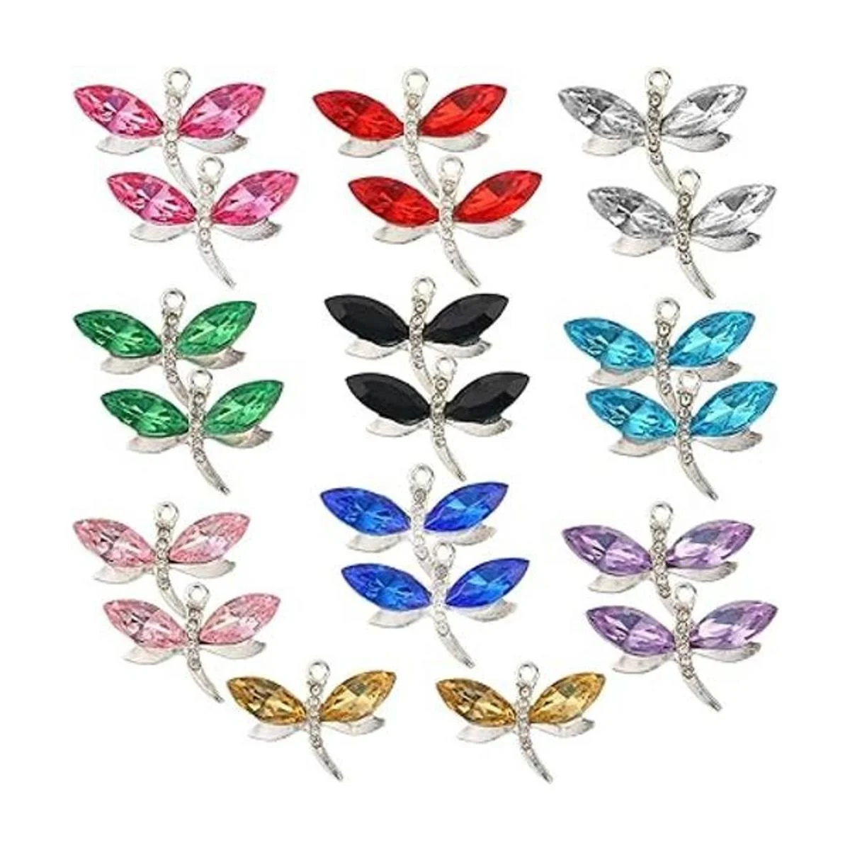 QXUJI 20 dijes de libélula para hacer joyas, dijes de metal de diamante, para collares, pulseras, aretes, accesorios de fabricación de joyas, 10 colores, Metal