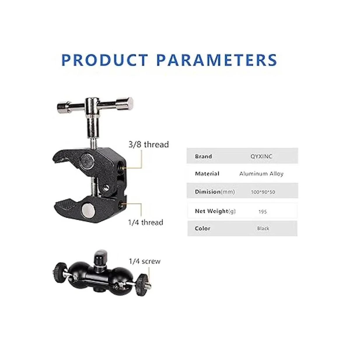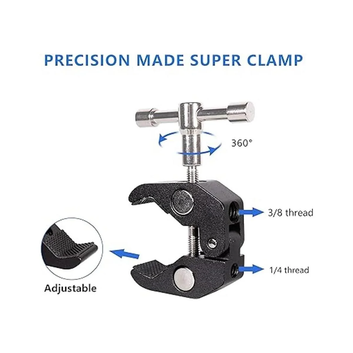 Función extensible La súper abrazadera tiene un agujero roscado de 1/4 y un agujero roscado de 3/8, por lo que se puede montar varios accesorios de CA, más cómodo de usar.
