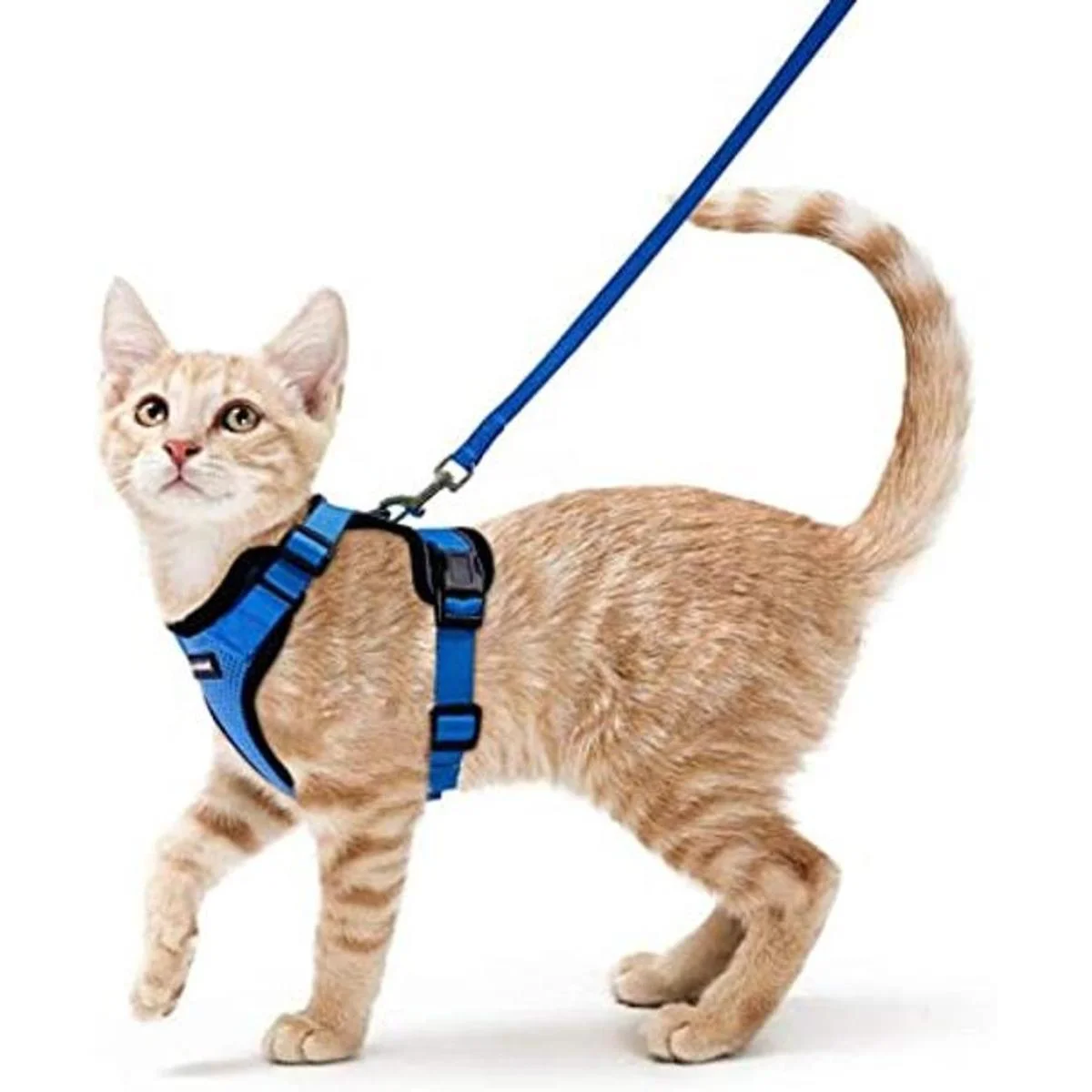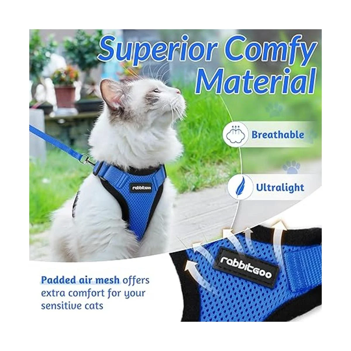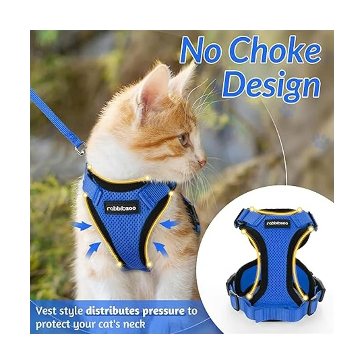 rabbitgoo Arnés y correa para gato, para pasear con el gato, a prueba de fugas, arnés suave y ajustable, para gatos, fácil control, transpirable, con tiras reflectantes