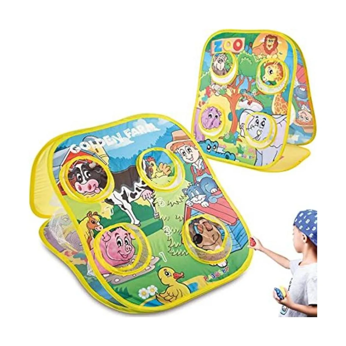 Diseñado específicamente para niños: tamaño de agujero optimizado, tamaño y peso adecuados, diseño plegable ligero, bolsa de asa portátil, hace que sea el mejor juego de lanzamiento de pufs para niños