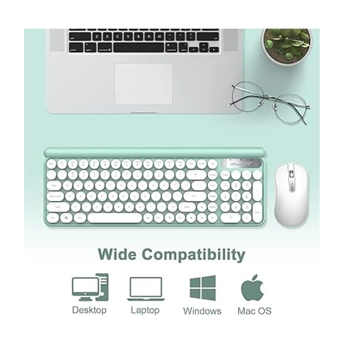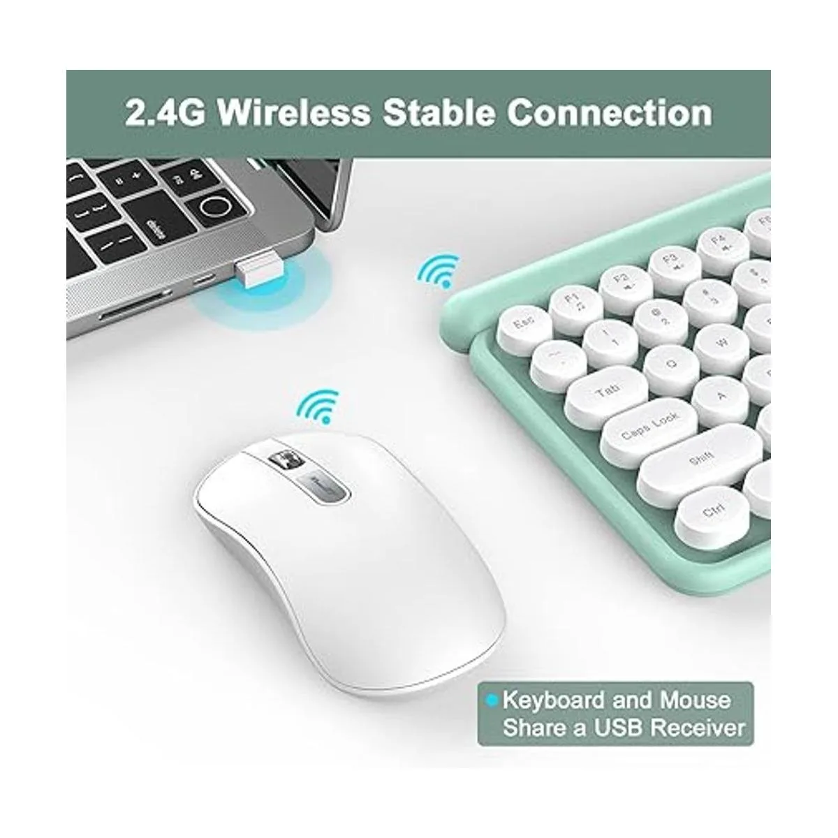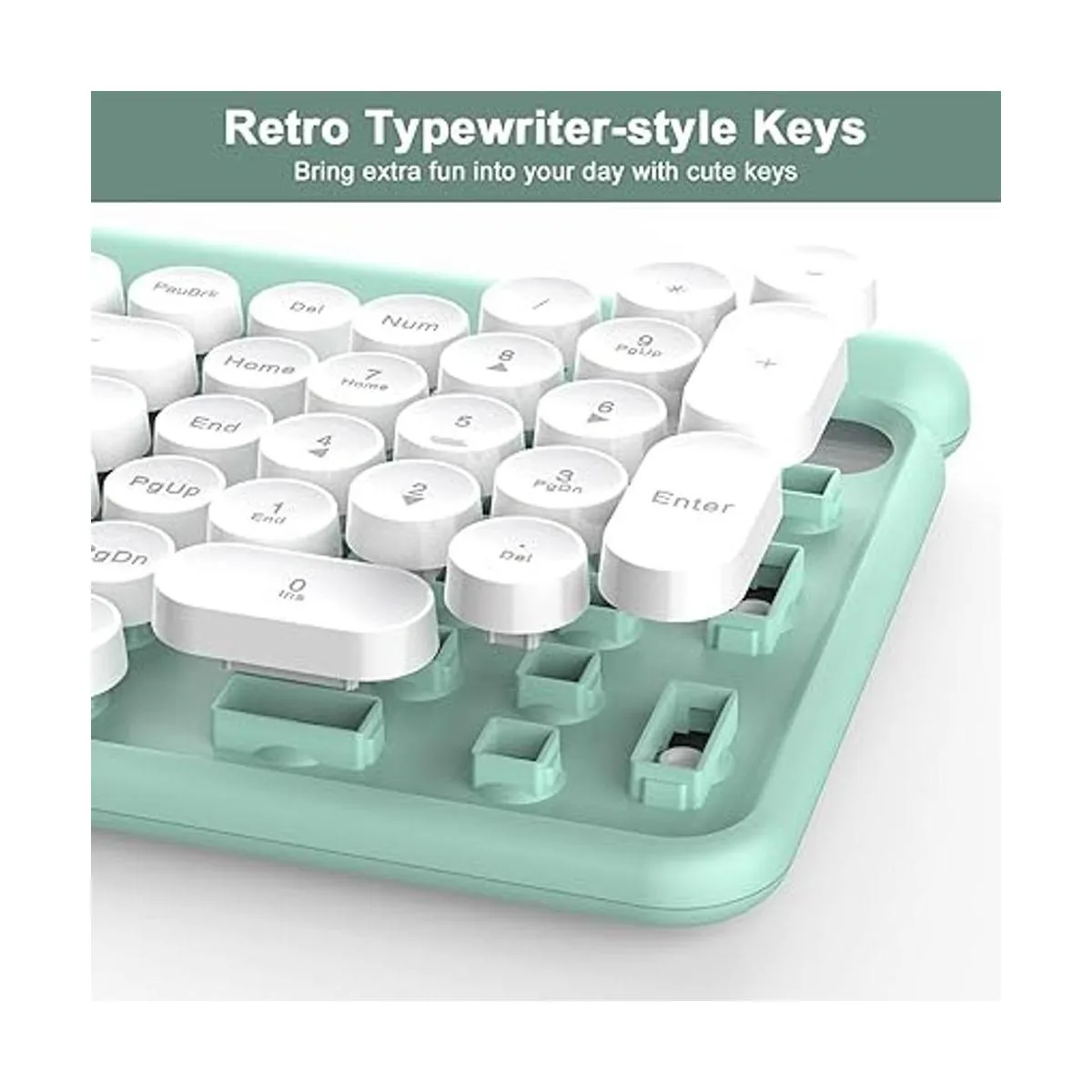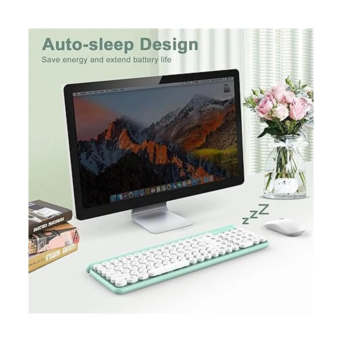 Diseño retro de teclas redondas: la tecla utiliza una forma redonda única, que es elegante y al mismo tiempo táctil y cómoda, lo que te permite disfrutar de una escritura cómoda y suave. Teclado inalámbrico con muy bajo ruido que te permite centrarte más en tu trabajo y evitar molestar a tus colegas y a los que te rodean.
