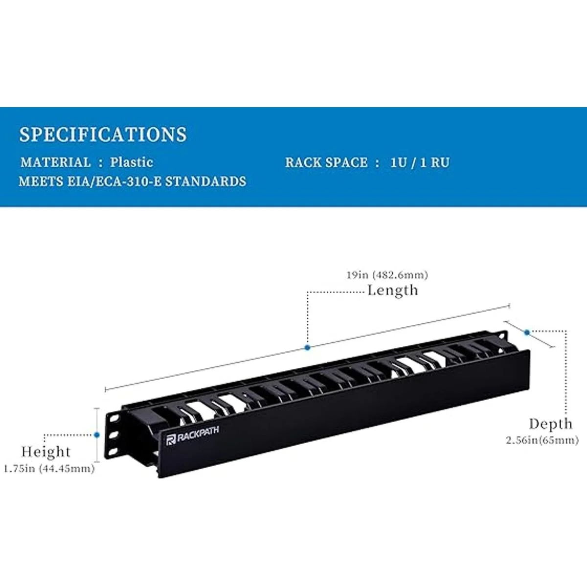 RackPath Conducto de gestión de cables de plástico de 19 pulgadas con cubierta de panel