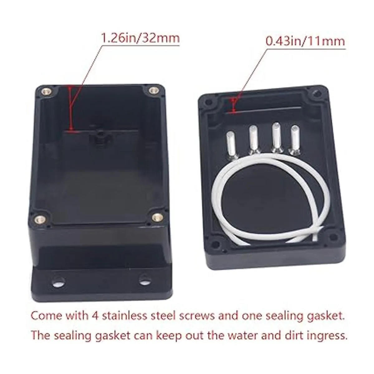 Raculety Paquete de 2 cajas de proyectos IP65, caja de conexiones impermeable de plástico ABS, cajas eléctricas negras, caja electrónica para proyectos de bricolaje, caja de alimentación con oreja fija de 3.94 x 2.68 x 1.97 pulgadas 3.937 x 2.677 x 1.969 in