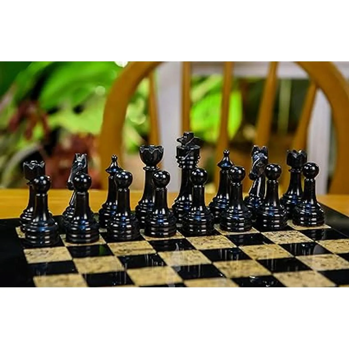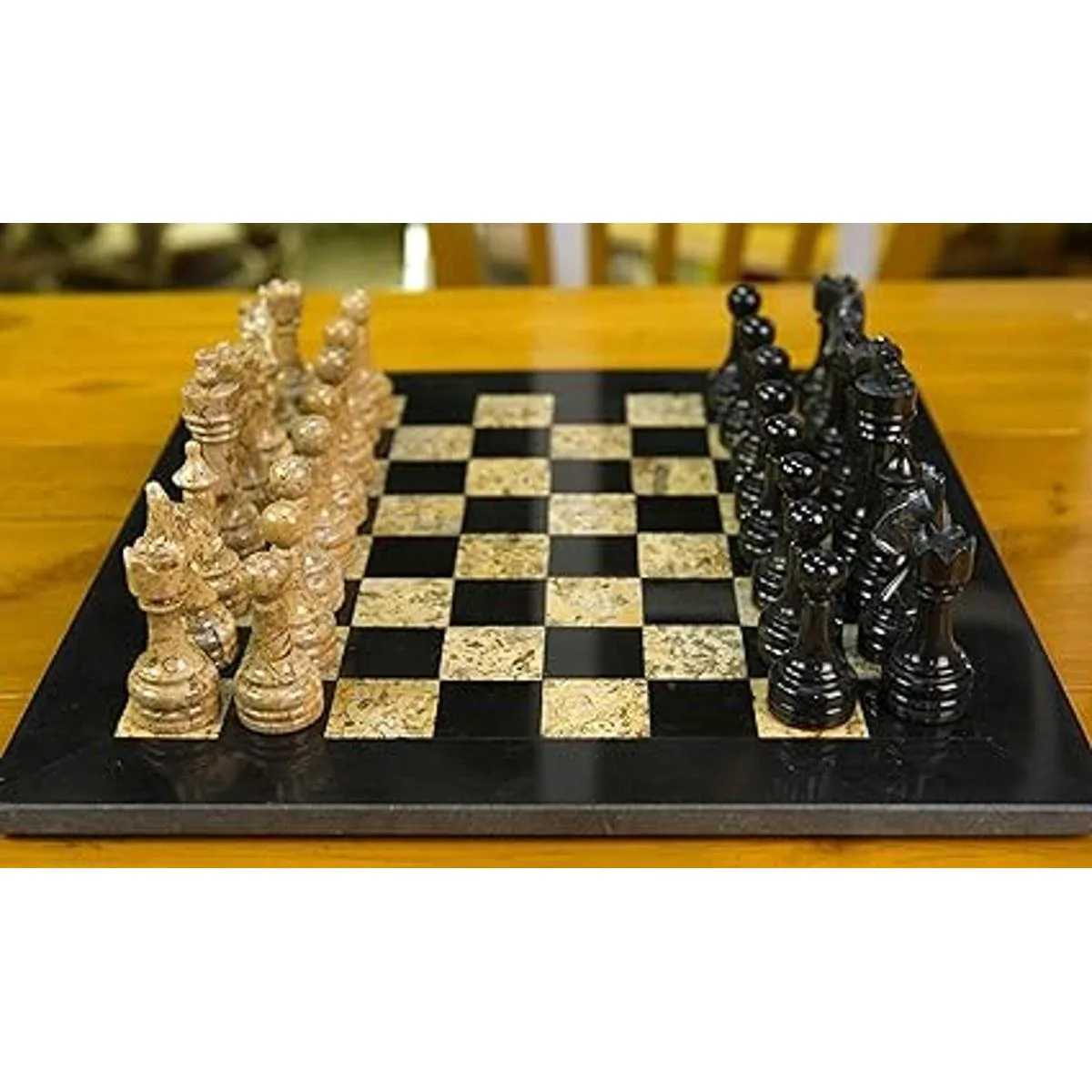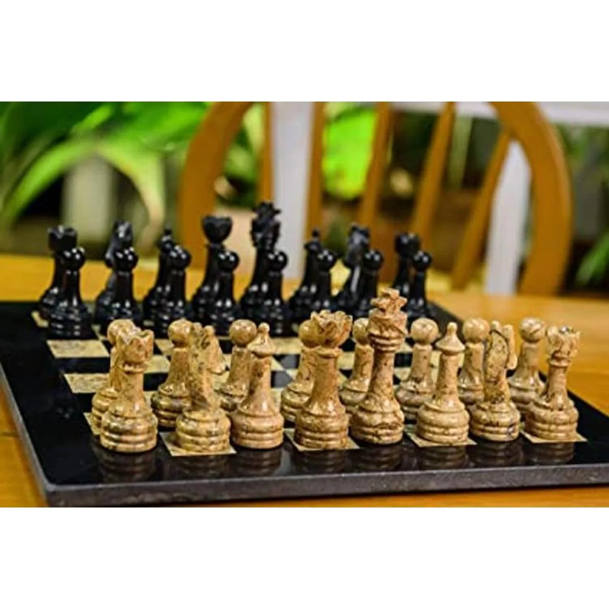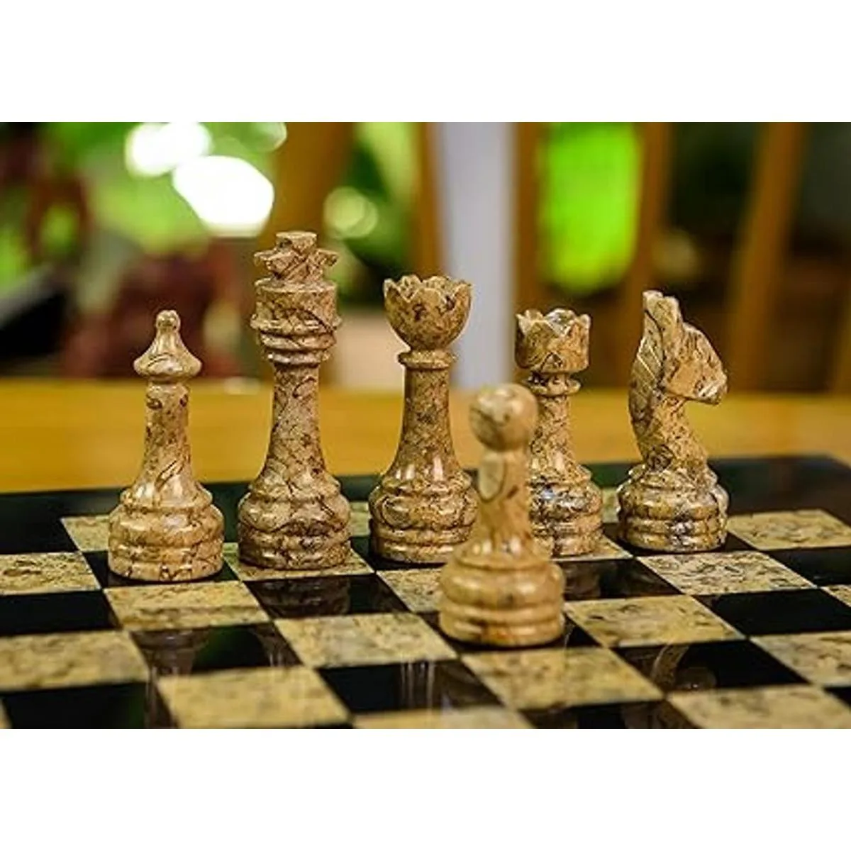 Material: este juego de ajedrez está totalmente hecho a mano con ónix de mármol de alta calidad. Las figuras de tablero de ajedrez y ajedrez están totalmente pulidas a mano.
