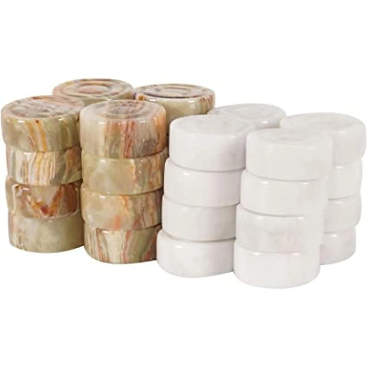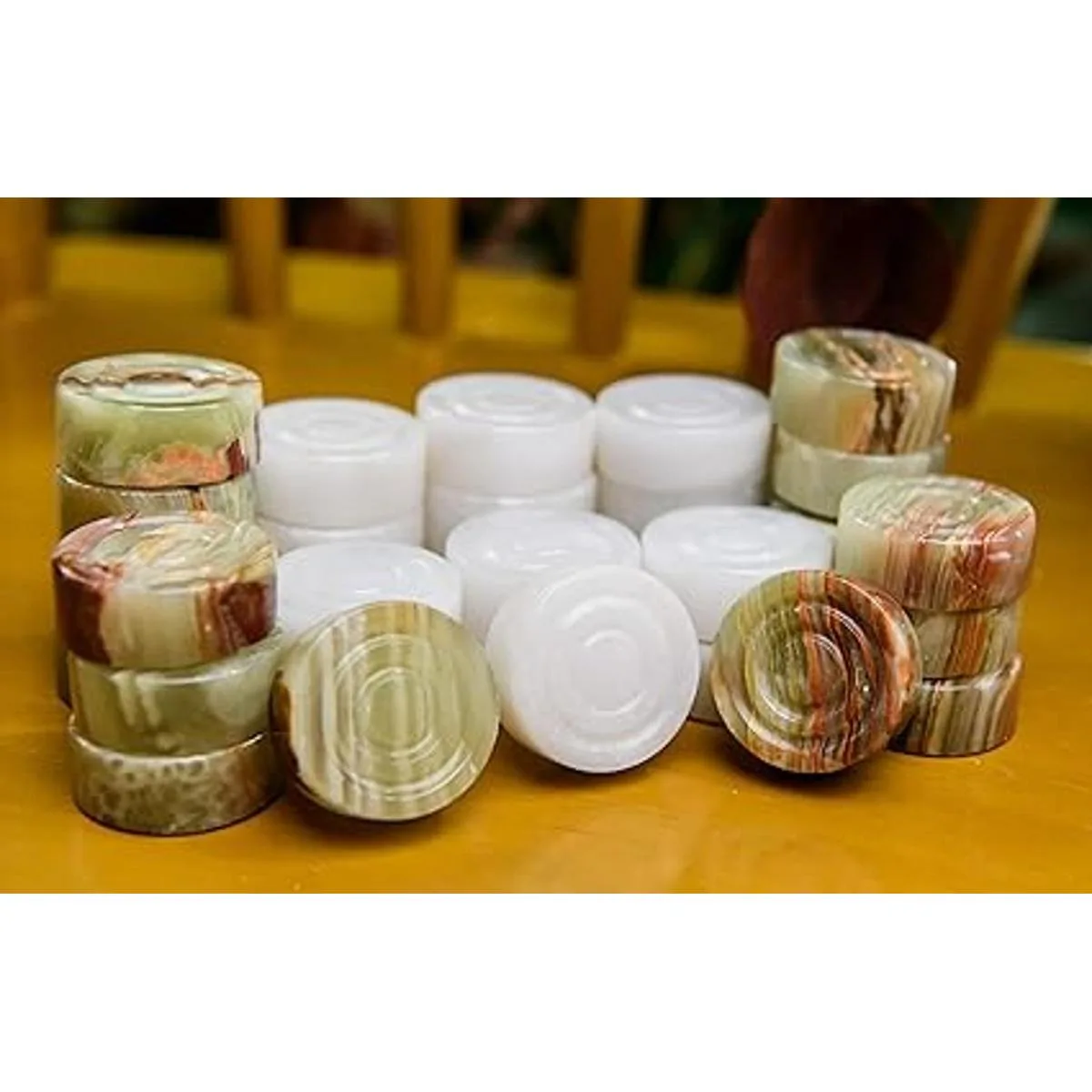 RADICALn Juegos de mesa grandes de ónix blanco y verde, figuras completas de cuadros Adecuado para tablero de cuadros de 15 pulgadas Juego de 32 piezas de cuadros antiguas Borradores de madera totalmente hechos a mano en mármol