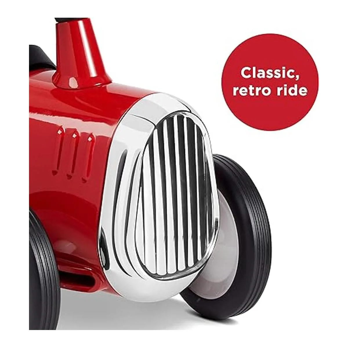 Diseño clásico: el diseño clásico del Little Red Roadster incluye un cuerpo de acero resistente, acabados cromados, dirección de trabajo y bocina de bocina. Este fiable paseo durará años.