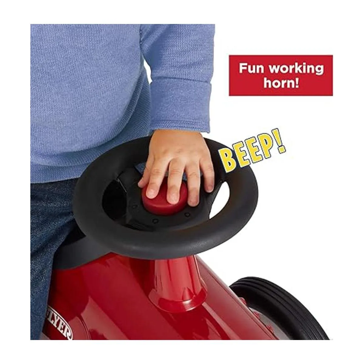 Desarrolla habilidades motoras: este paseo tiene dirección de trabajo y una bocina de bocina. Estas características enseñan a los niños a montar y desarrollar habilidades motoras finas.