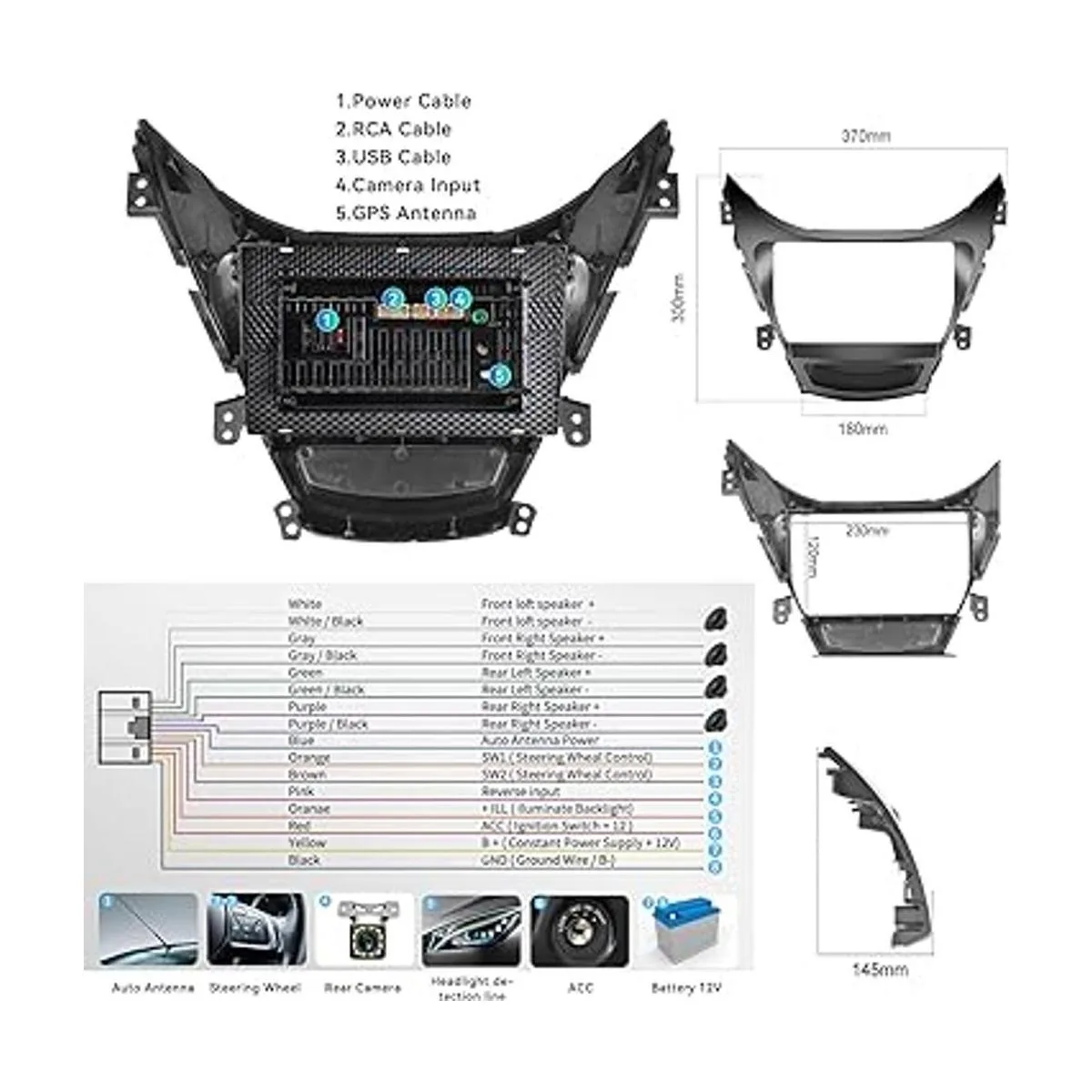 Radio Hyundai Elantra 2012 2013, Android 9 estéreo de navegación GPS DSP Bluetooth USB SWC Android e iOS, unidad principal multimedia 1G RAM 16G ROM cámara de reserva