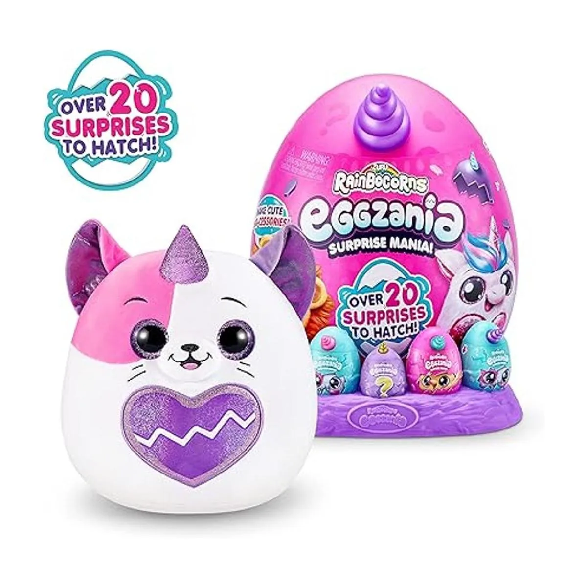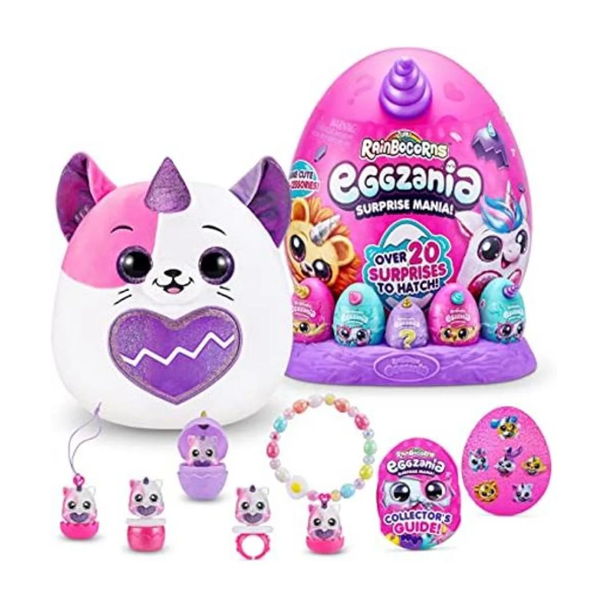 Rainbocorns Eggzania Surprise Mania Series 1 gatito por ZURU, animal de peluche coleccionable, huevos sorpresa, 5 mini huevos, calcomanías, joyería de bricolaje, slime, a partir de 3 años para niñas y niños