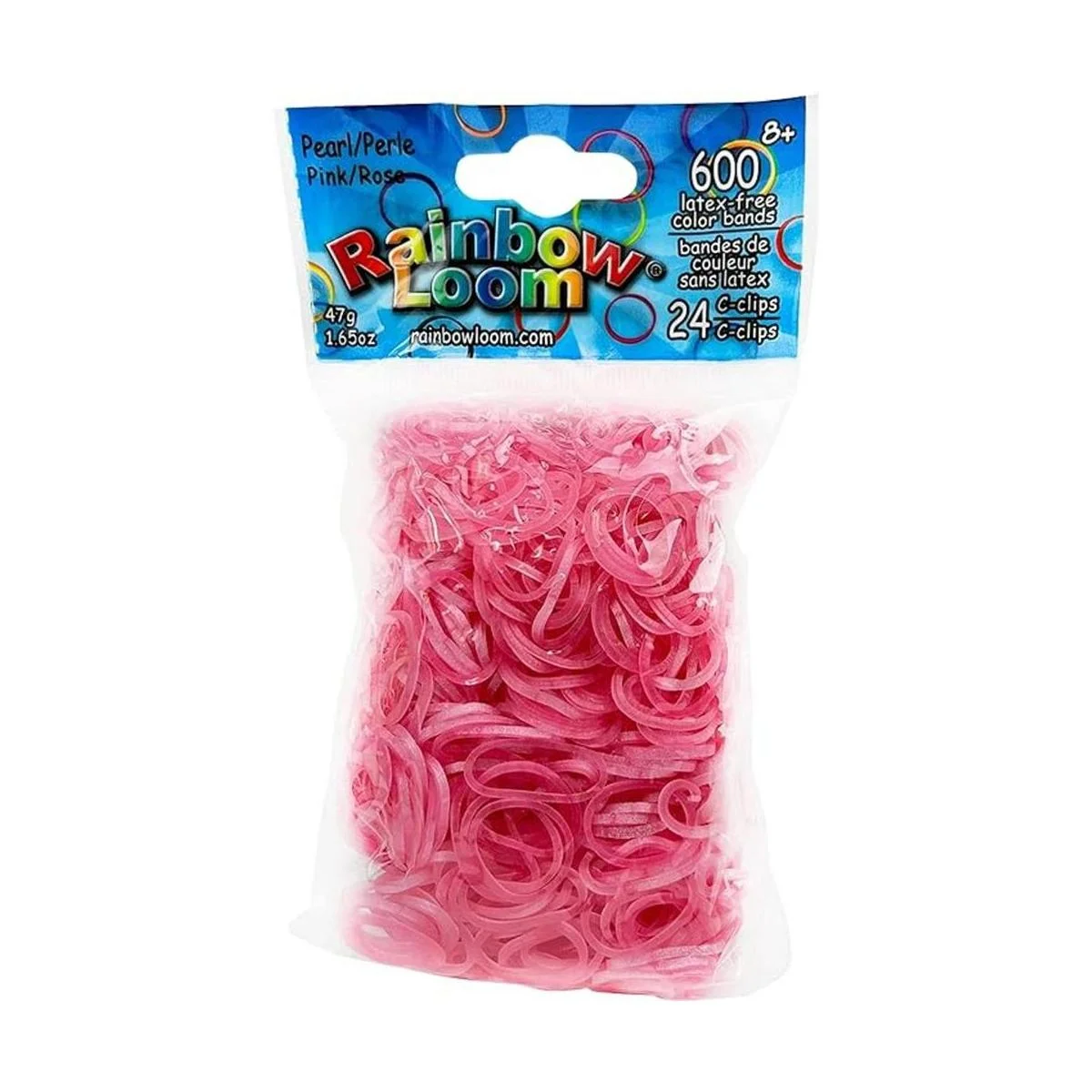 Rainbow Loom Bandas de goma rosa perlado con 24 clips en C 600 unidades