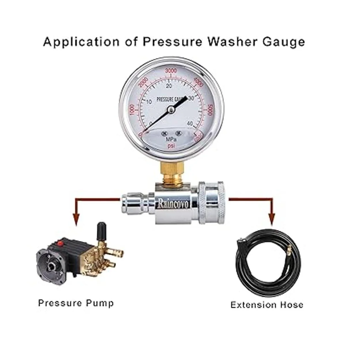Raincovo Manómetro de lavado a presión, 6000 PSI, conexión rápida de 38 pulgadas, medidor de presión para lavadora eléctrica