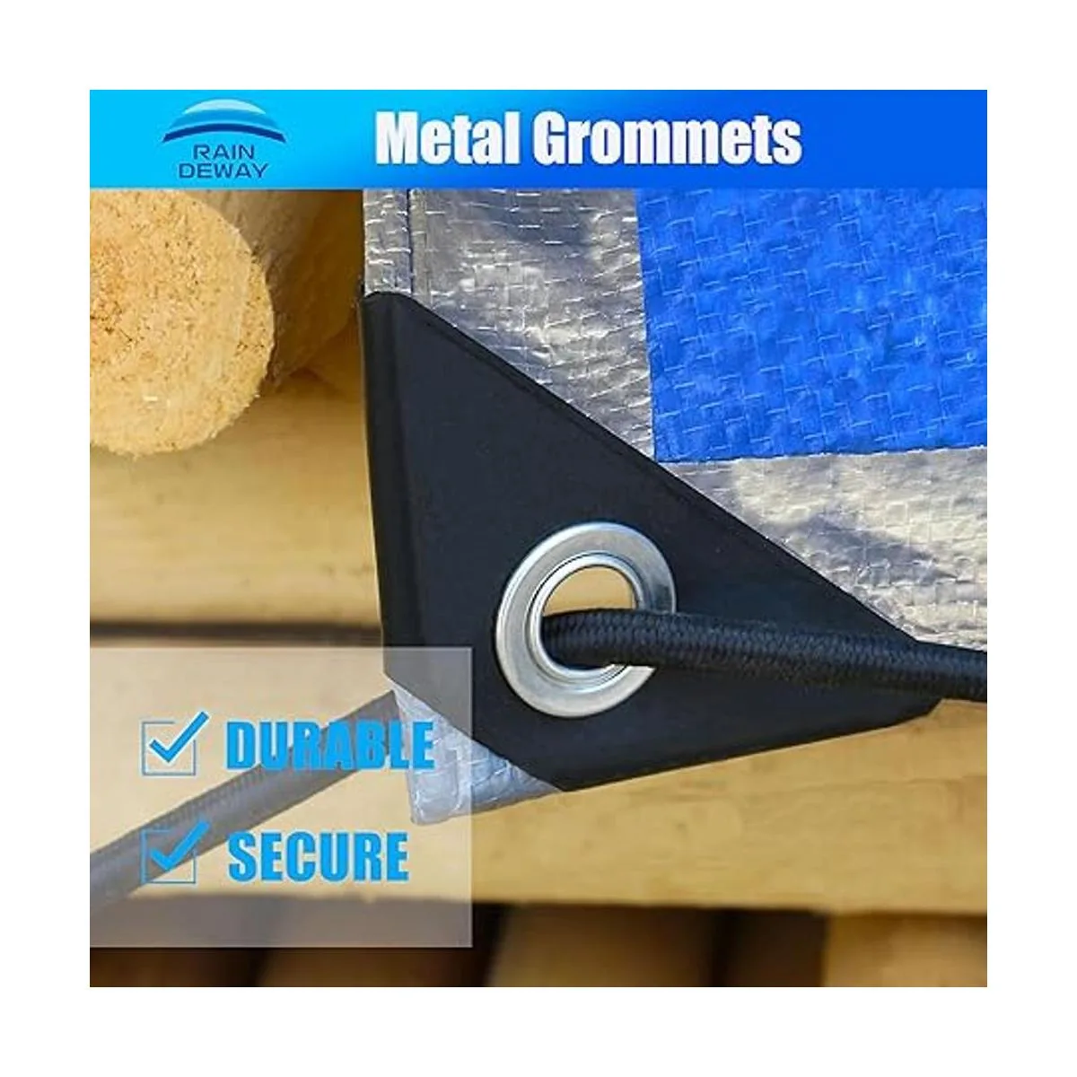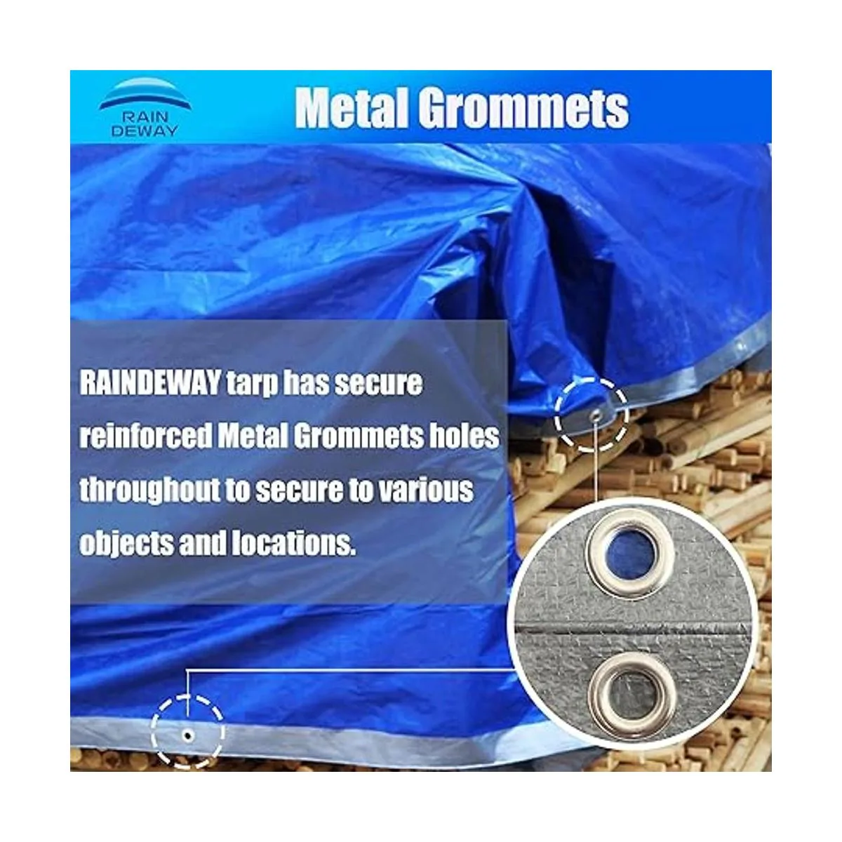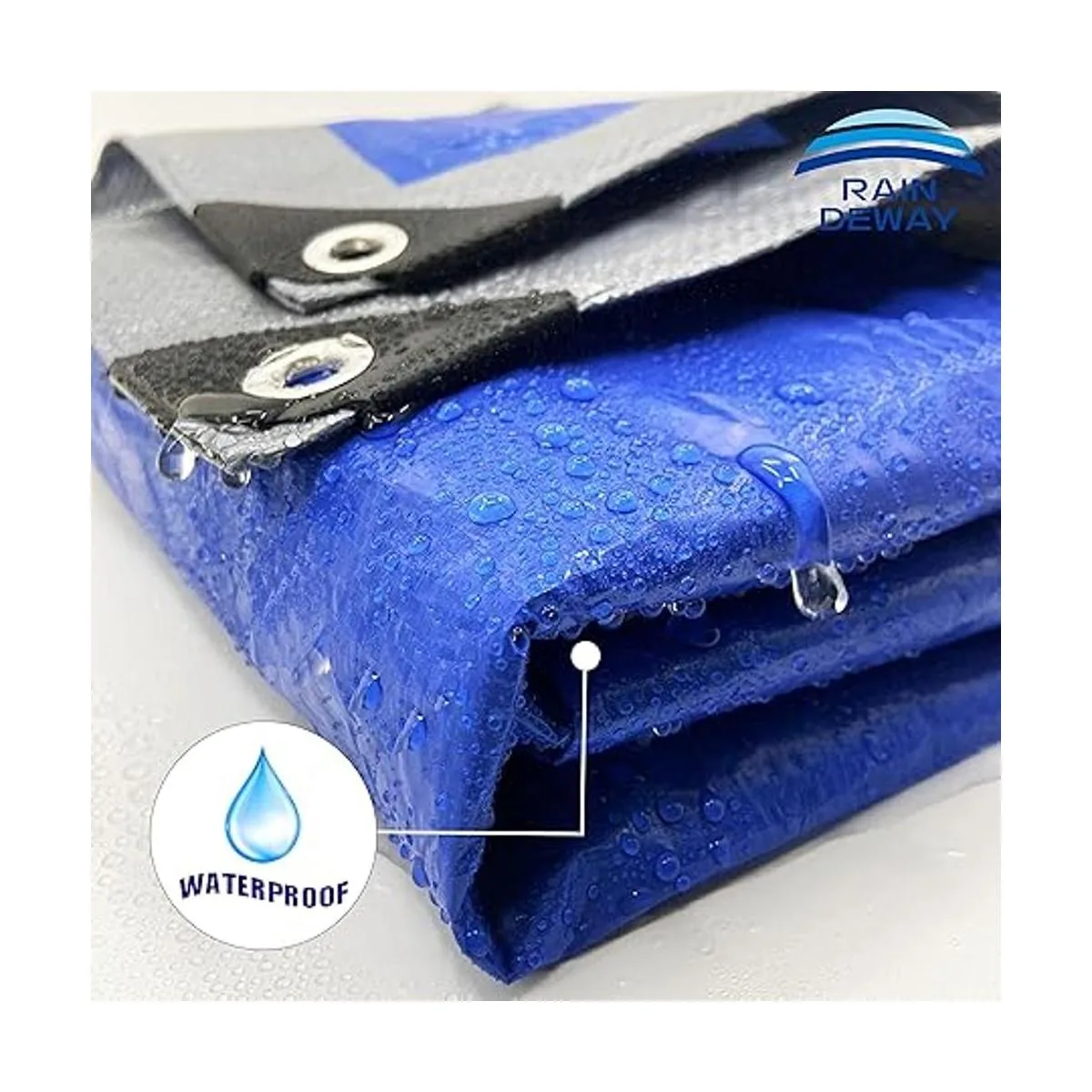 Resistente al agua: la cubierta de lona Raindeway está hecha de material de polietileno impermeable, esta es una buena opción, que es para usar para tienda de campaña impermeable, pintura, alfombra de piscina, etc.