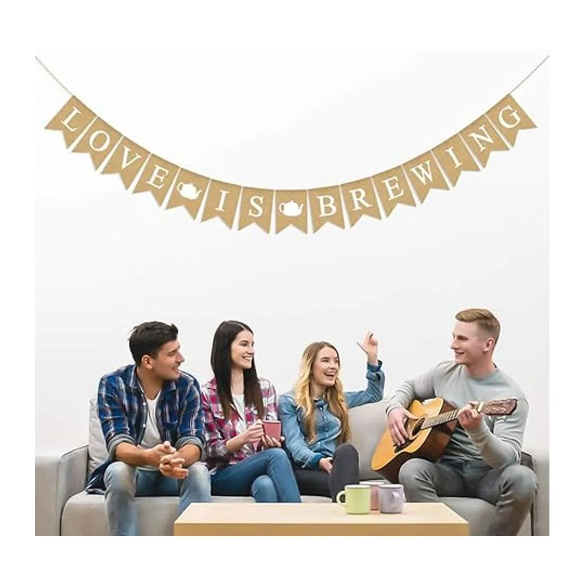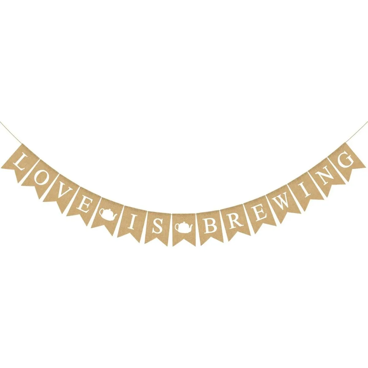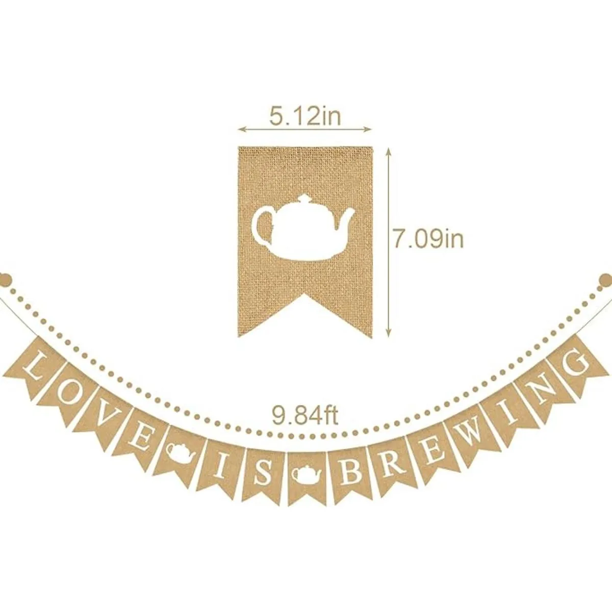 Rainlemon Bandera de yute con temática de té y café para novia, boda, fiesta de compromiso, guirnalda