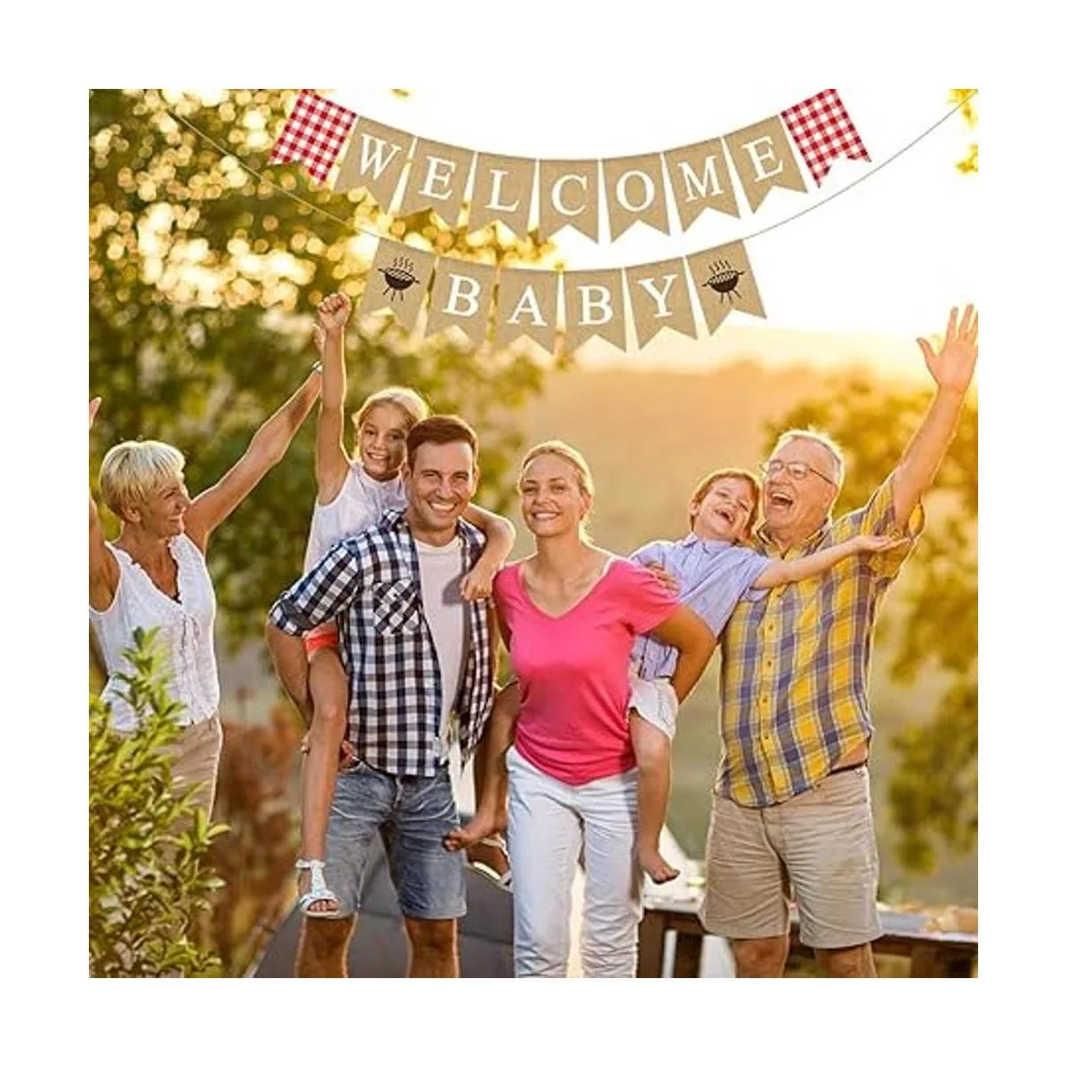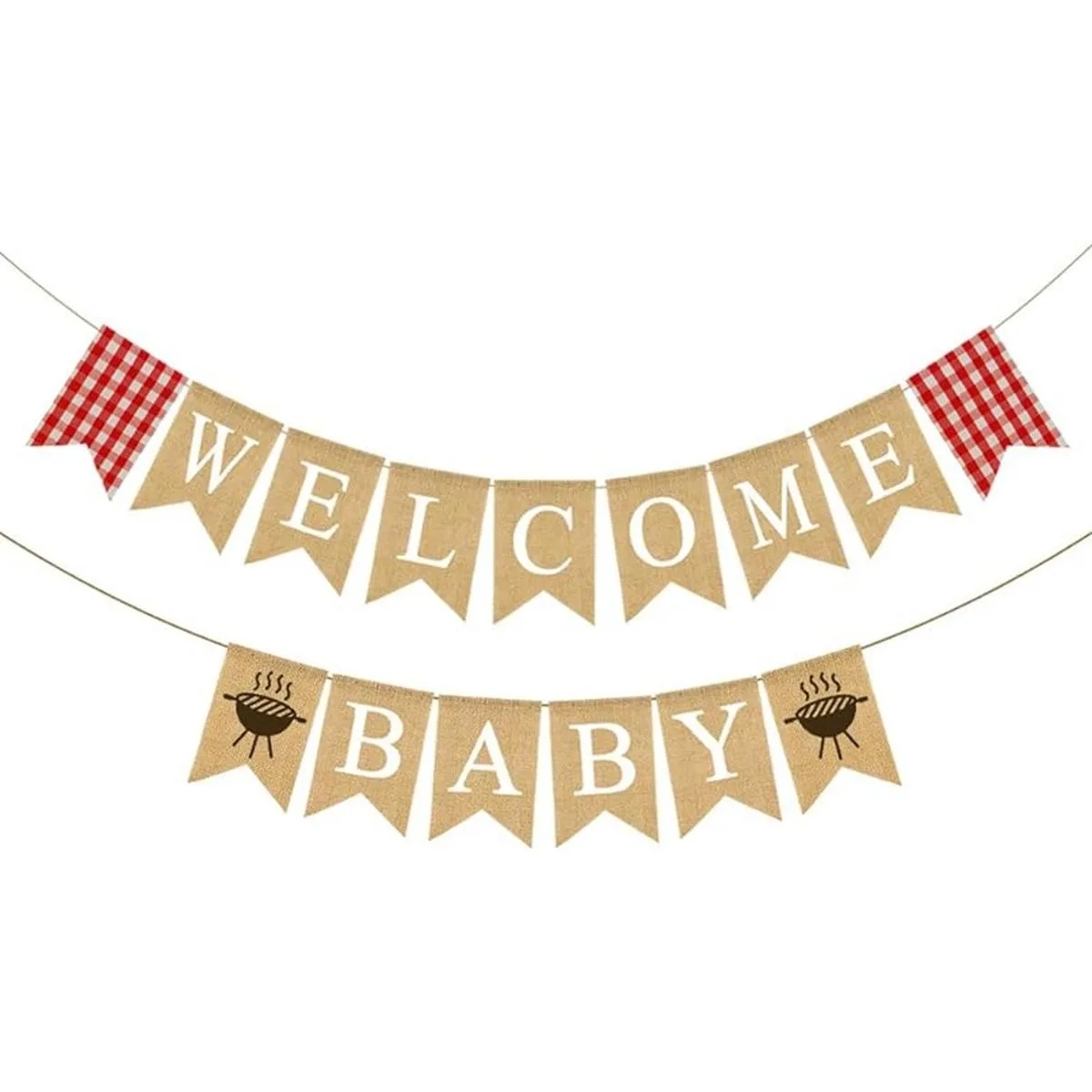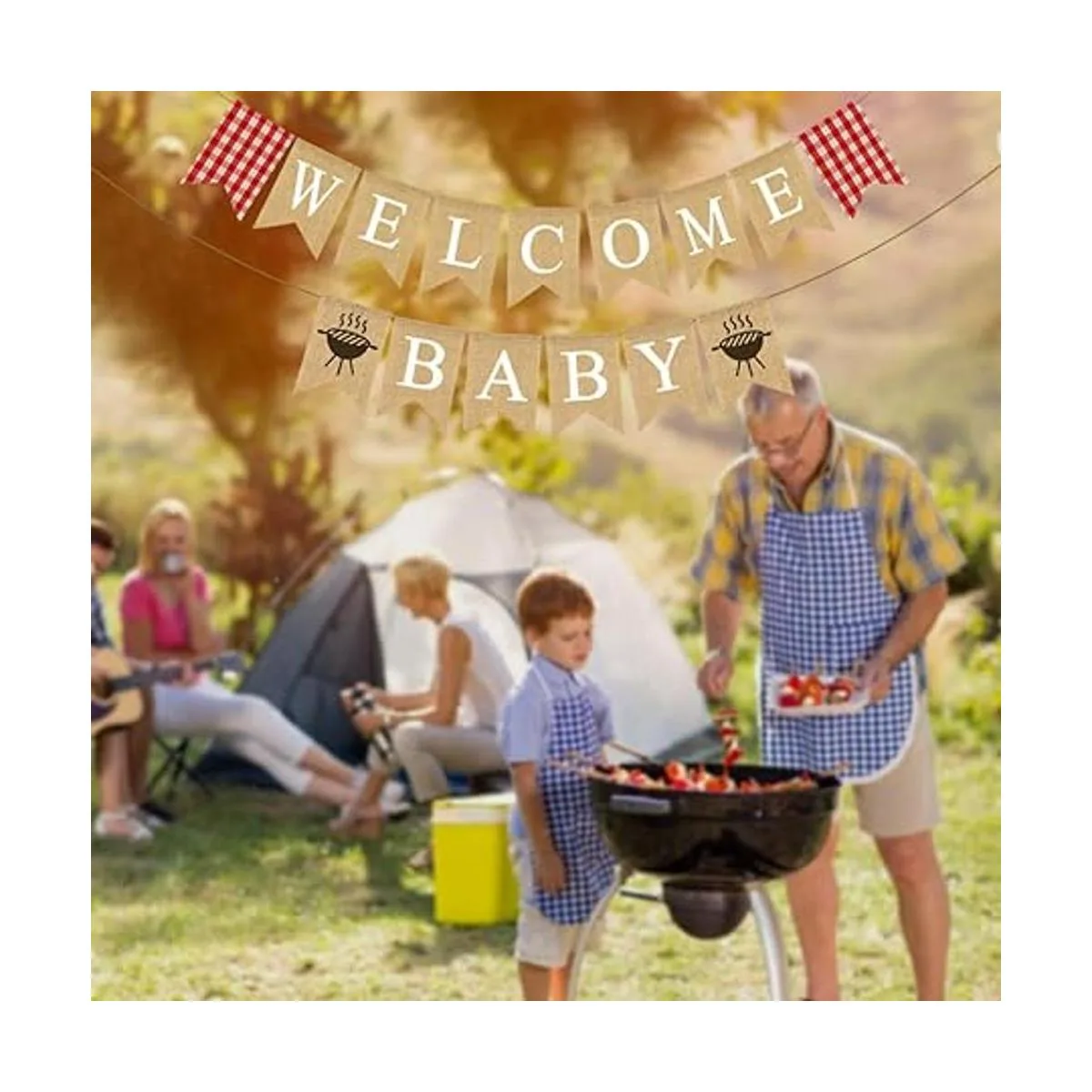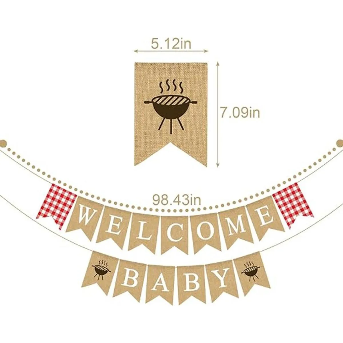 Rainlemon Bandera de yute para bebé con temática de barbacoa para fiesta de baby shower