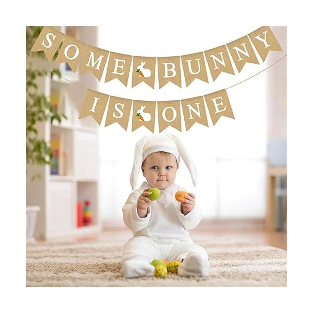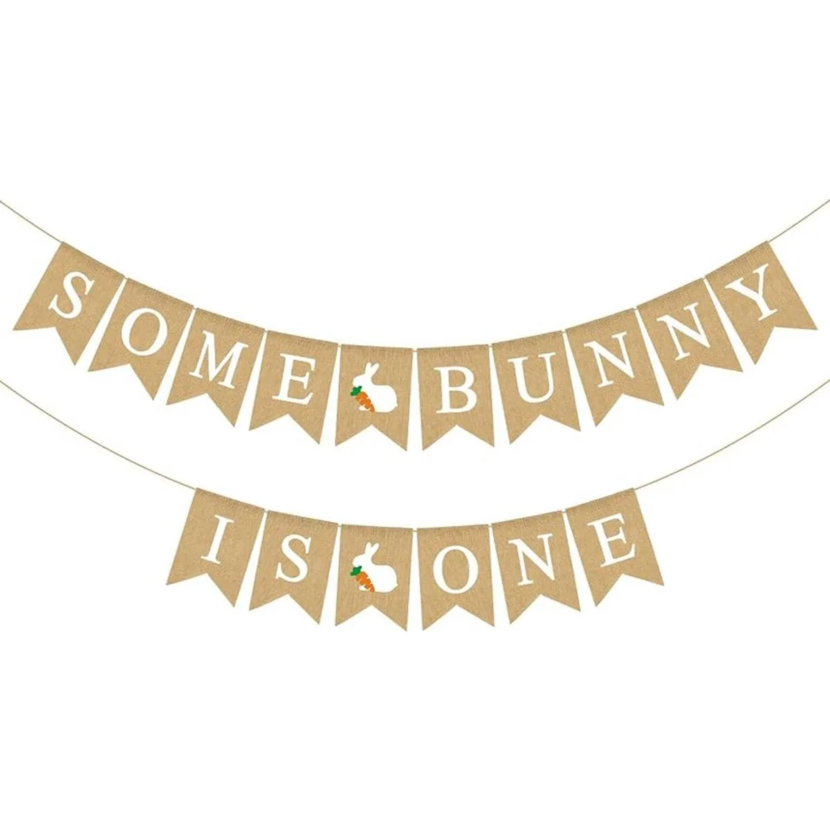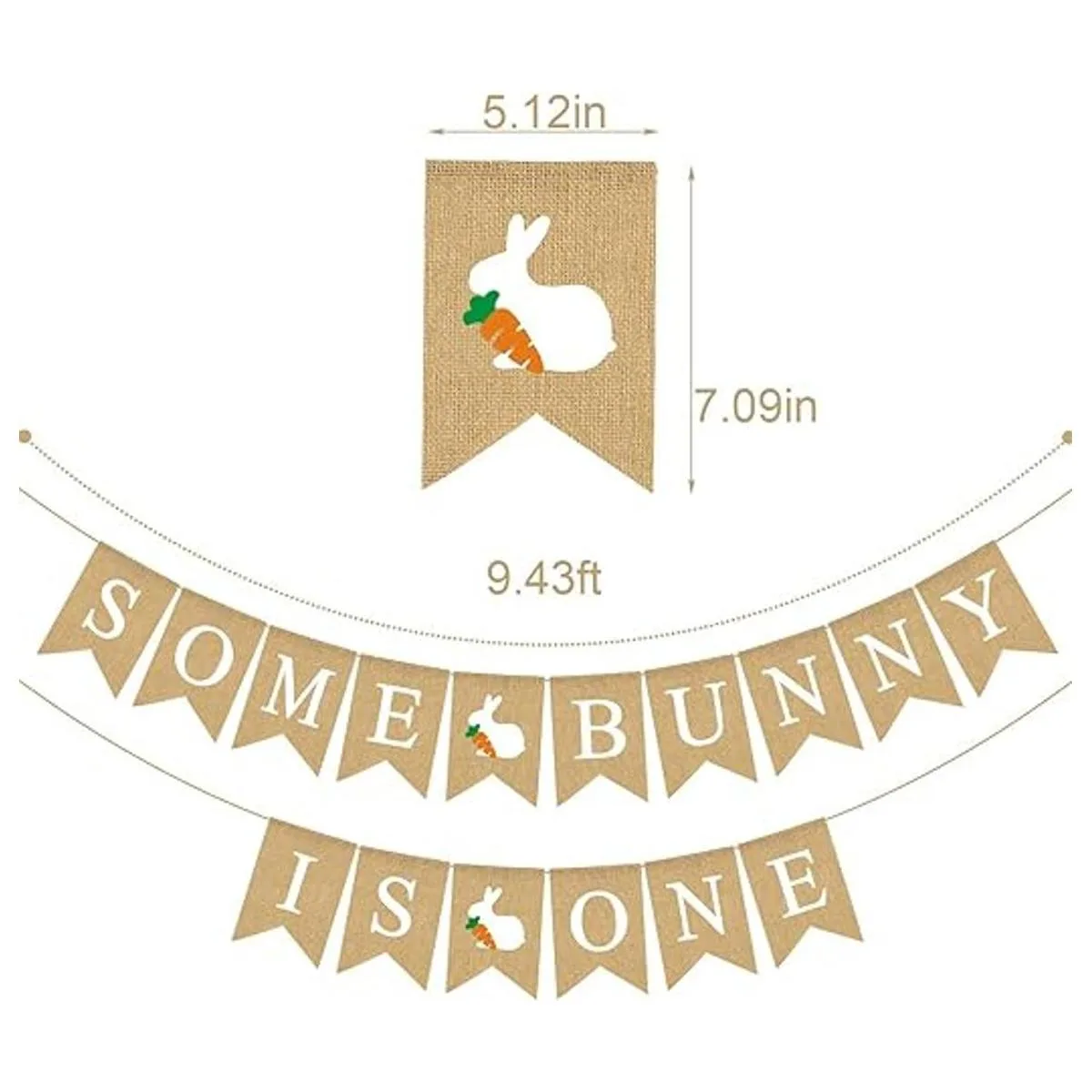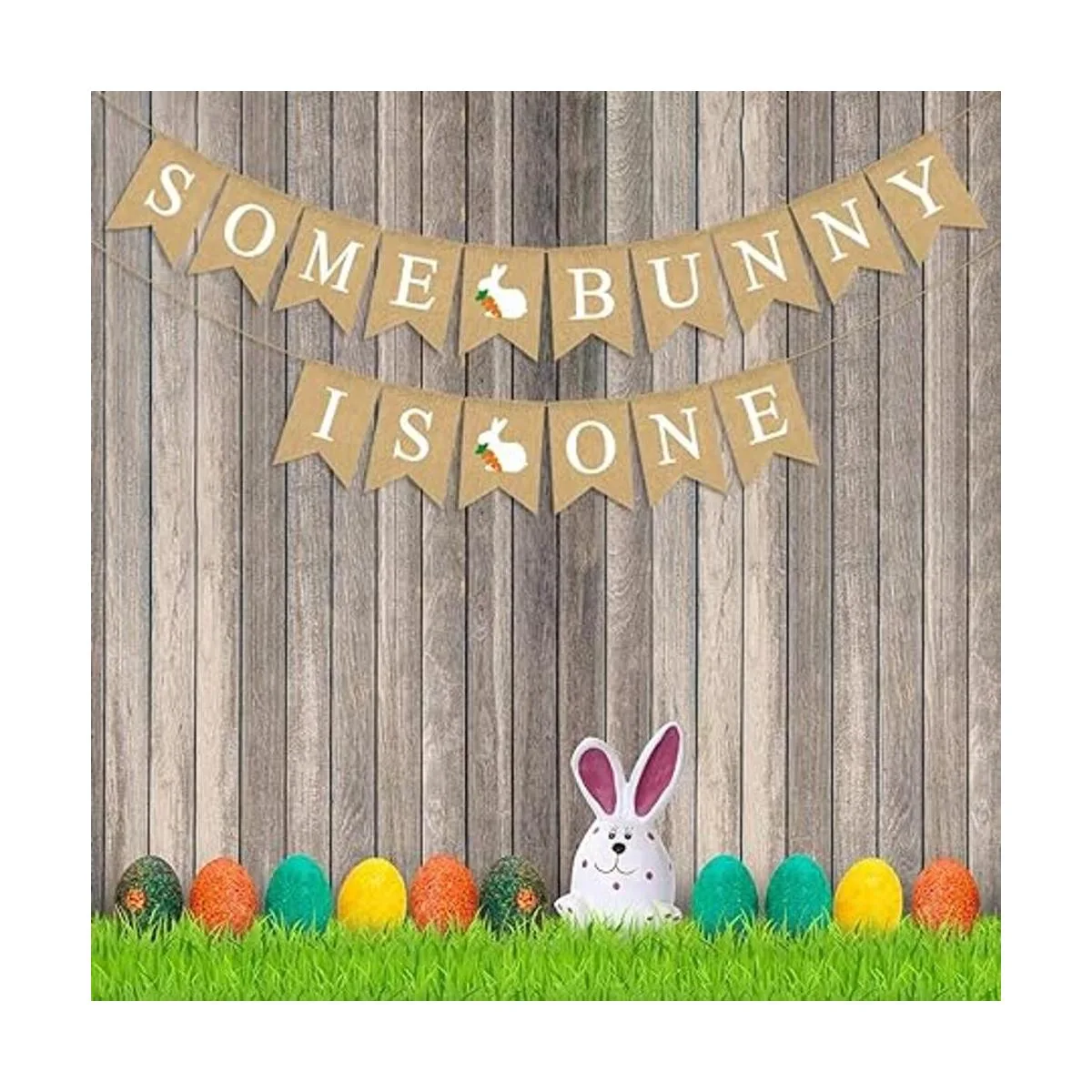Rainlemon Yute Burlap Some Bunny is One Banner Primavera Niño Niña 1er Cumpleaños Decoración Suministro