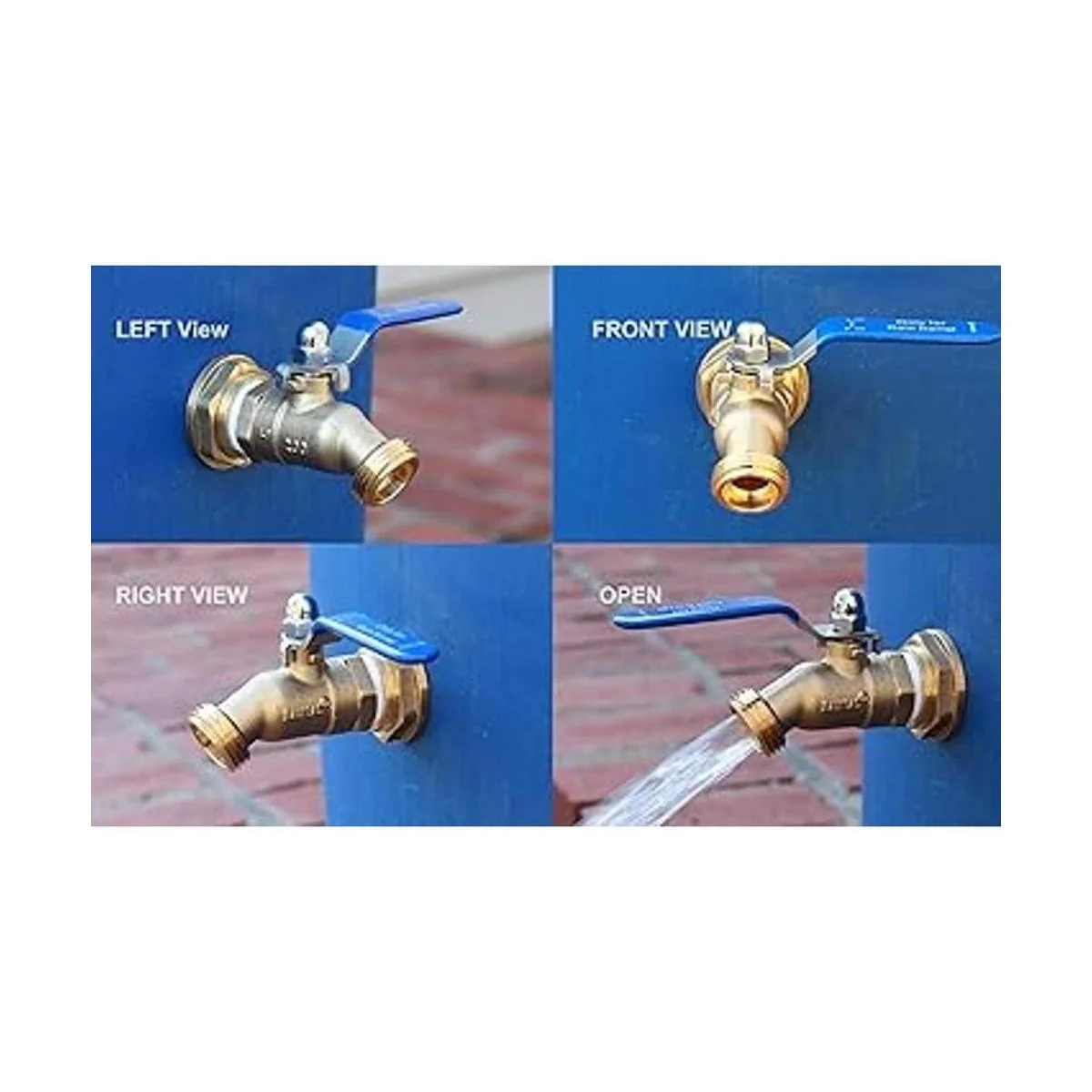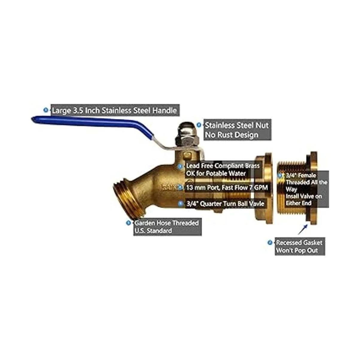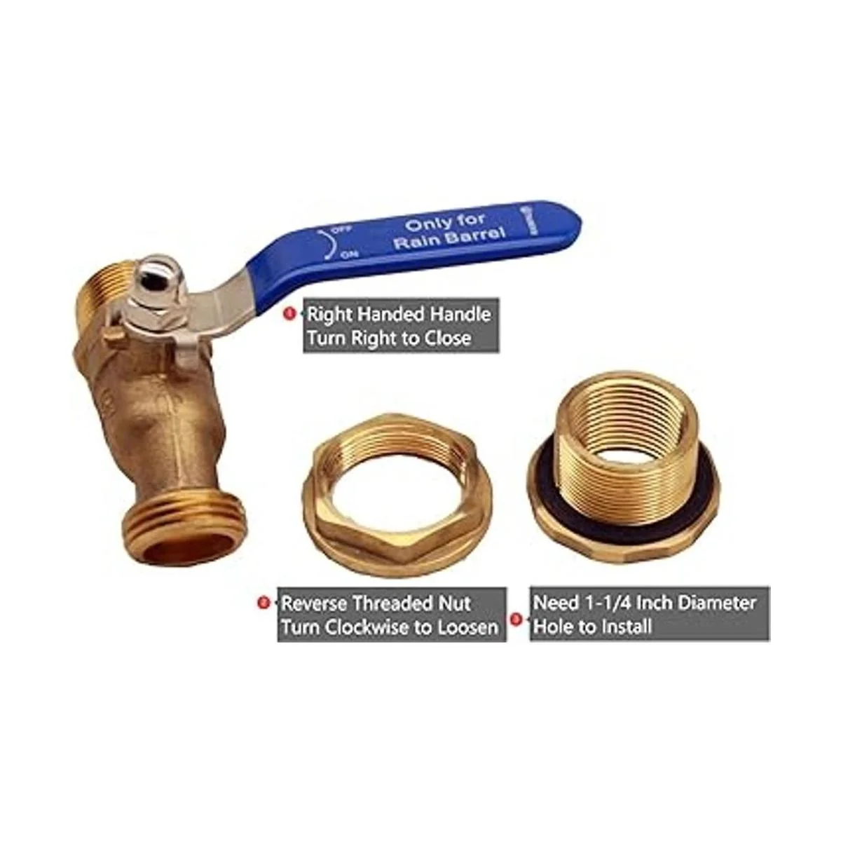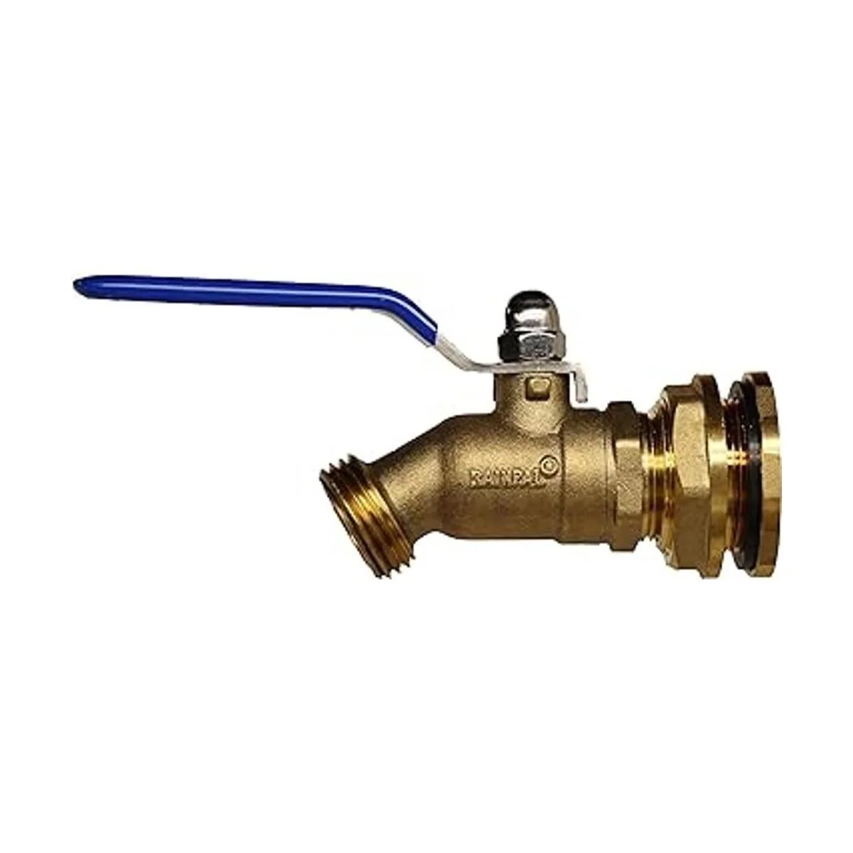 RAINPAL RBS024 Espita de barril de lluvia de latón LF cumple con la válvula de bola de 34 pulgadas con montaje de mamparo y cinta de rosca, 7 GPM