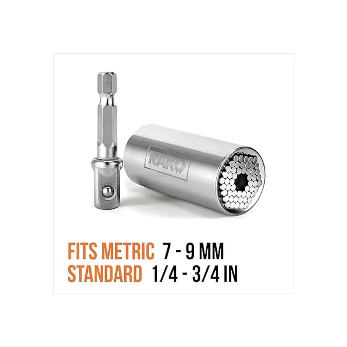 ADJUSTABLE Our universal super socket tool for men and women are designed to grip to most 1/4 to 3/4 7mm to 9mm bolts, hex nuts, screws, and other odd shaped heads, with over 125lbs of torque.