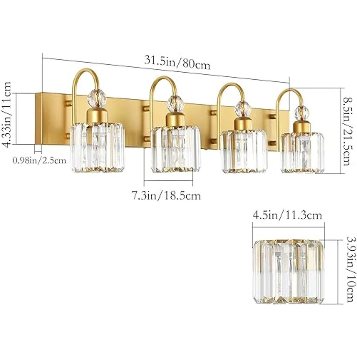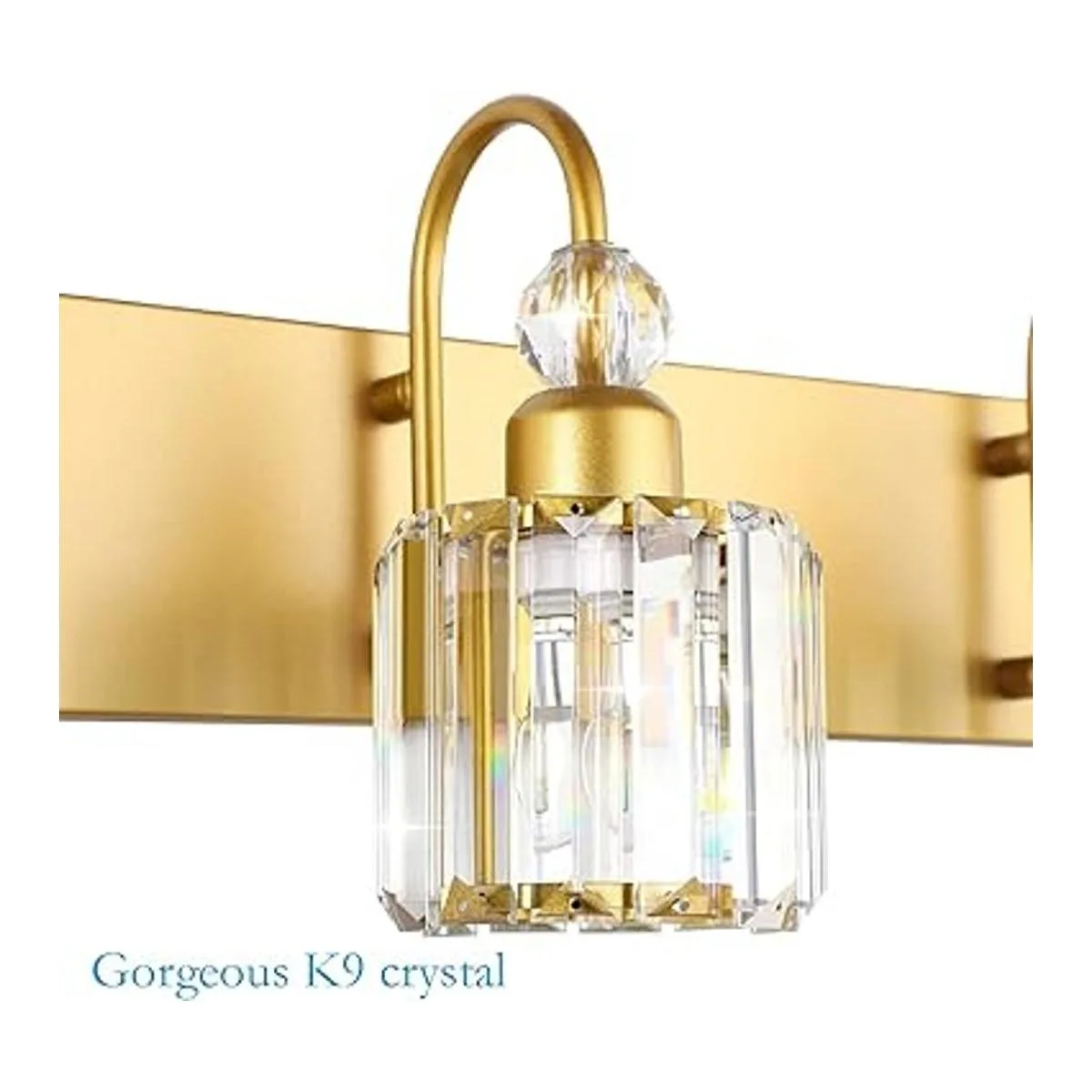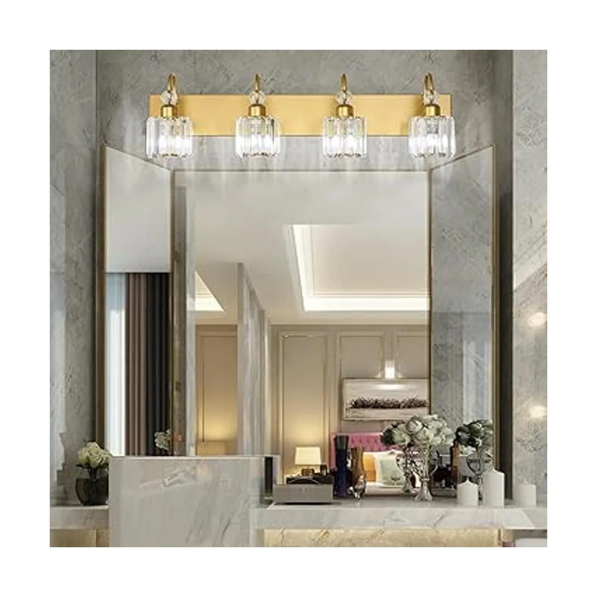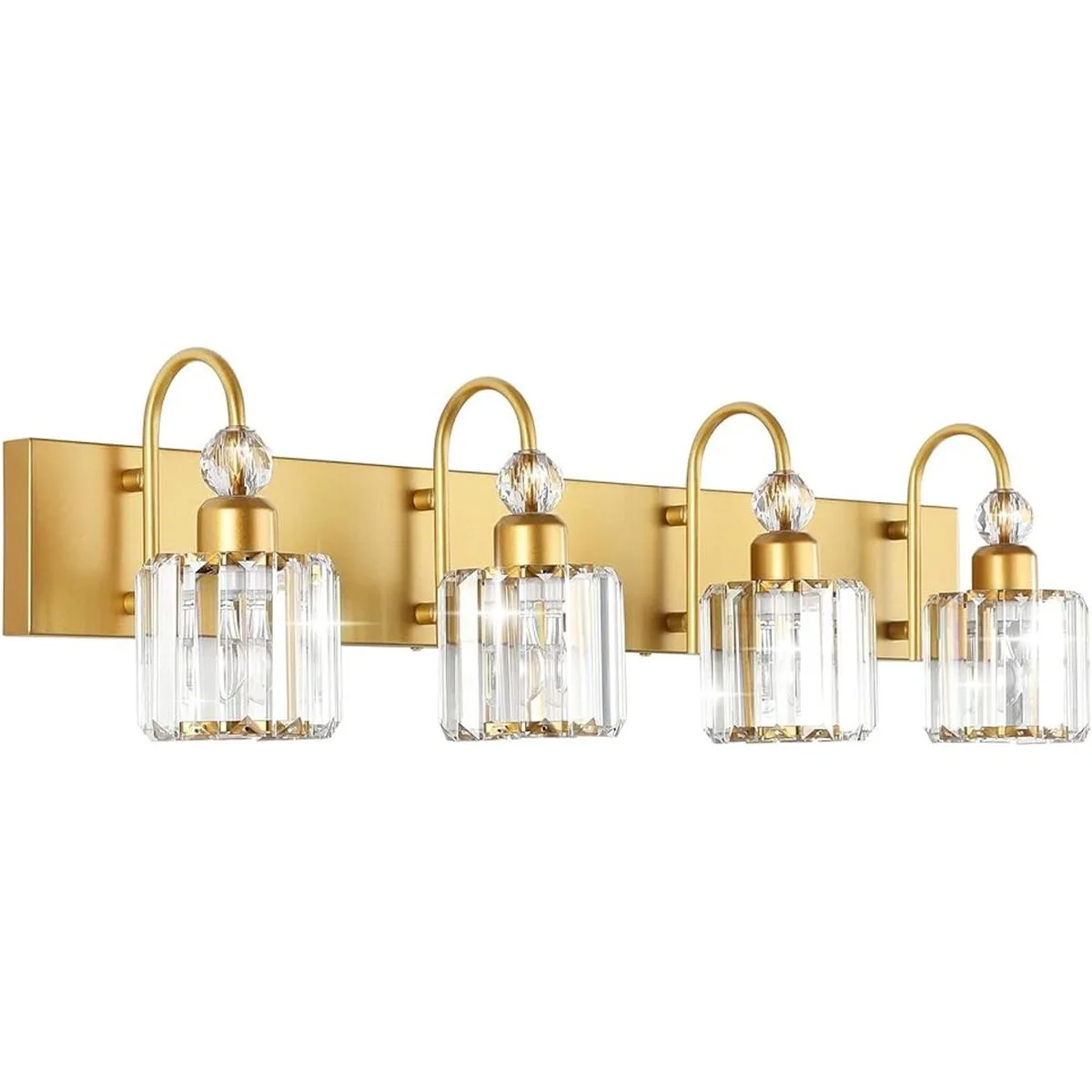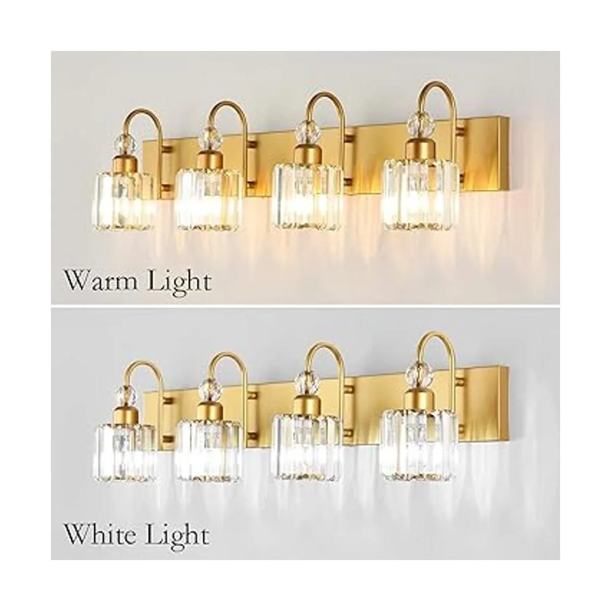 Ralbay Luces de tocador doradas de 4 luces de cristal dorado para baño, luces de tocador sobre espejo, accesorios de iluminación de pared de baño de cristal moderno