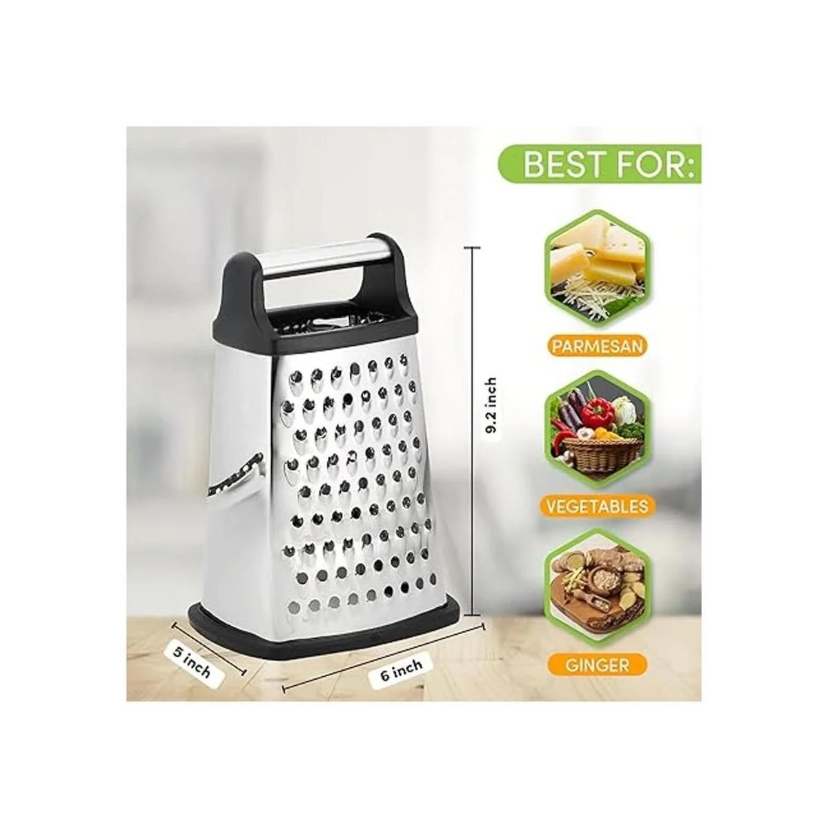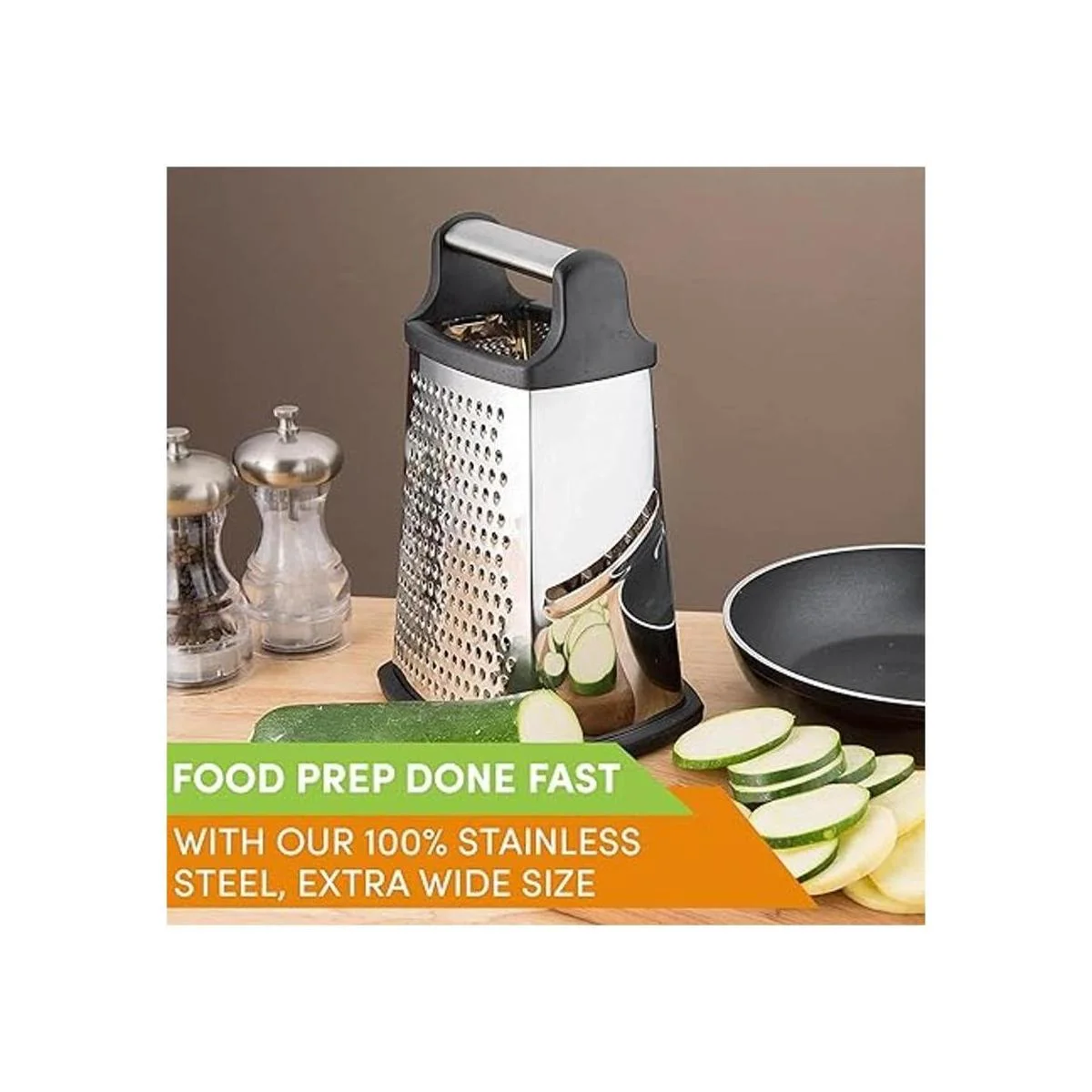 Rallador de caja profesional, acero inoxidable con 4 lados, mejor para queso parmesano, verduras, jengibre, tamaño XL, negro
