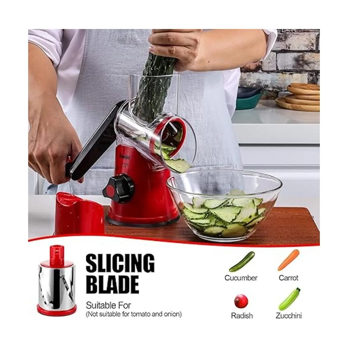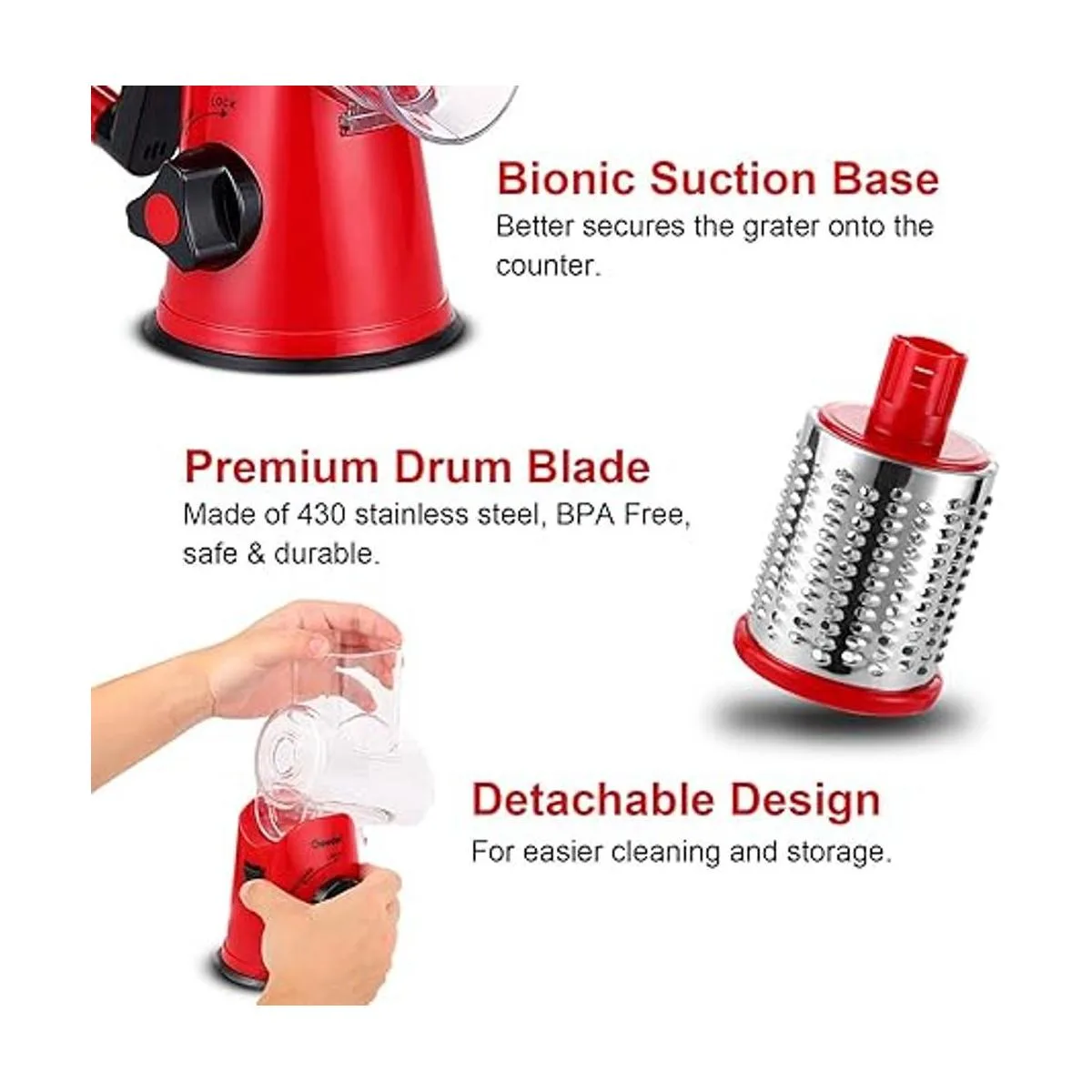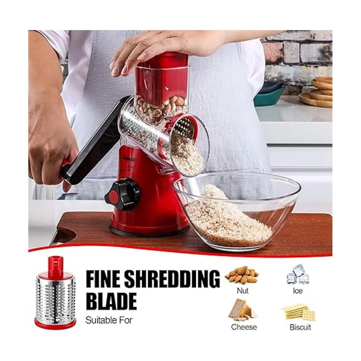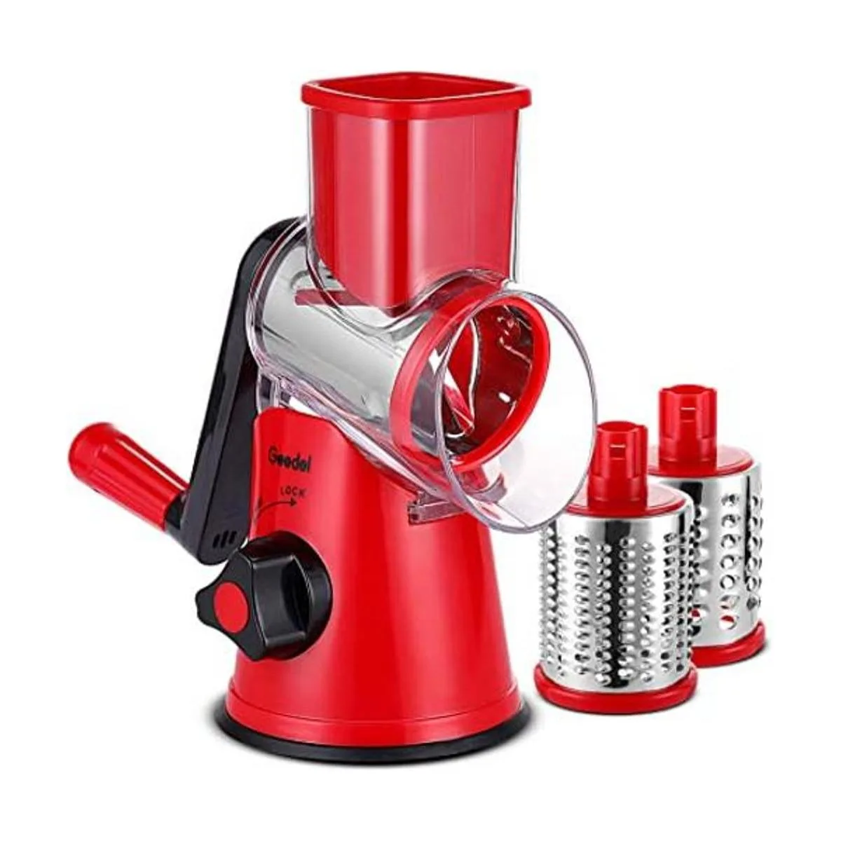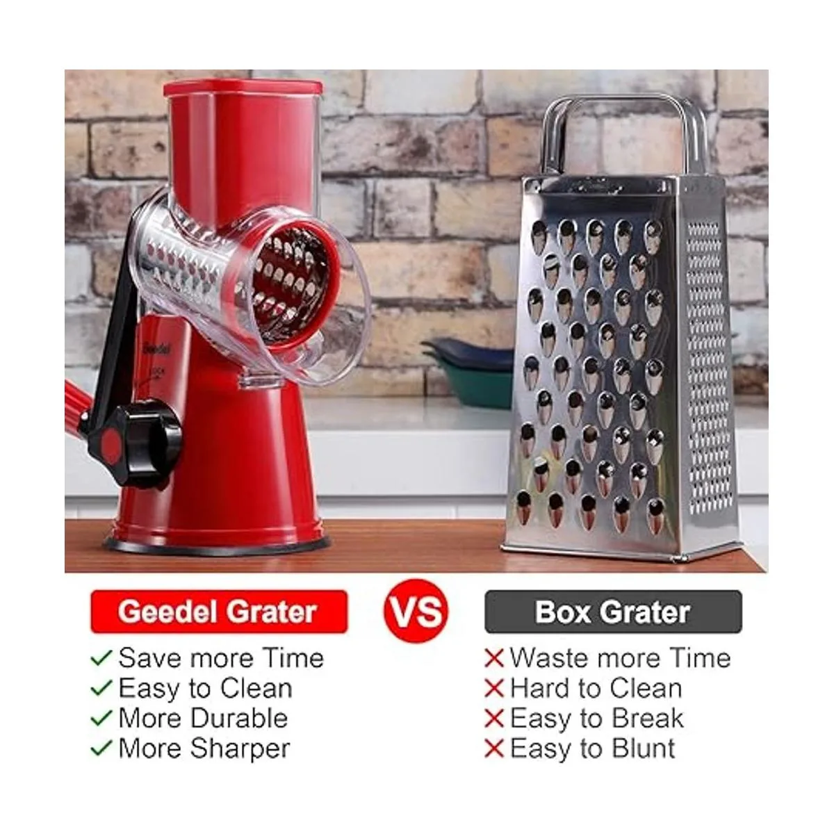 Rallador de queso giratorio Geedel, rallador de mandolina de cocina con 2 cuchillas de tambor, rallador de queso giratorio fácil de limpiar para frutas, verduras, nueces.