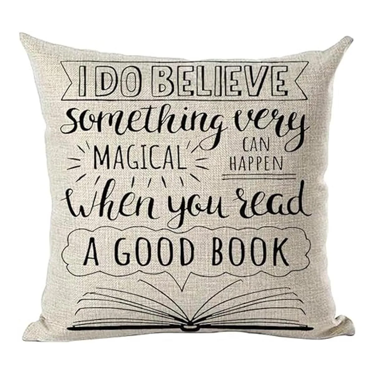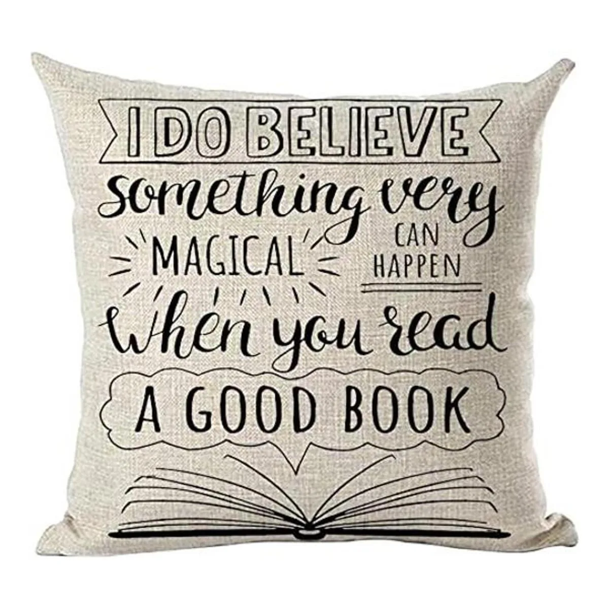 Ramirar Word Quote I Do Believe Something Magical Can Happen When You Read A Good Book Club Funda de almohada decorativa para casa, sala de estar, cama, sofá, coche, algodón, lino, cuadrado, 18.0 x 18.0 in