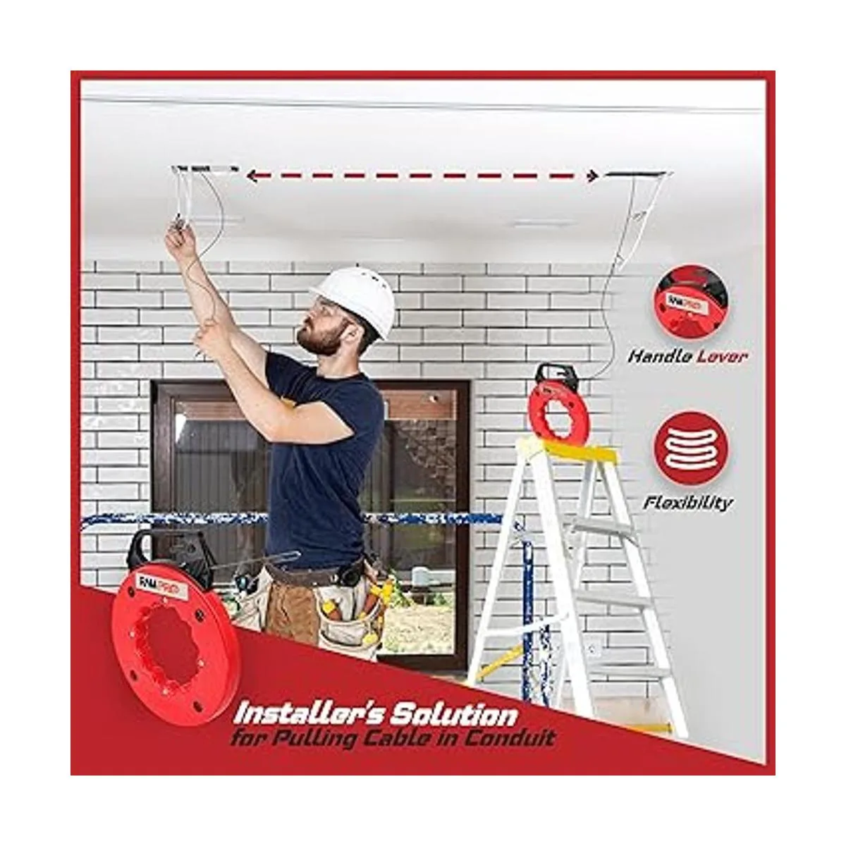 La cinta de acero firme pero flexible es práctica para tirar de cables grandes. De lo contrario, es difícil de hacer.