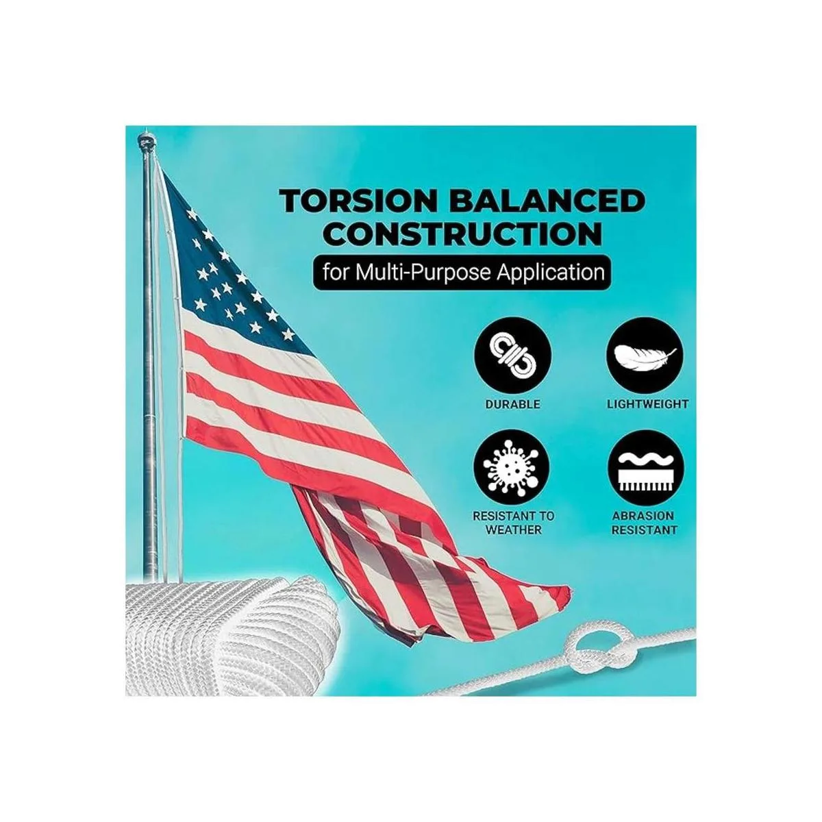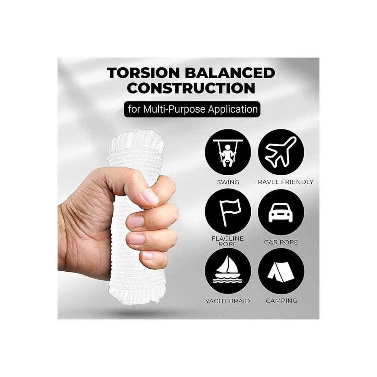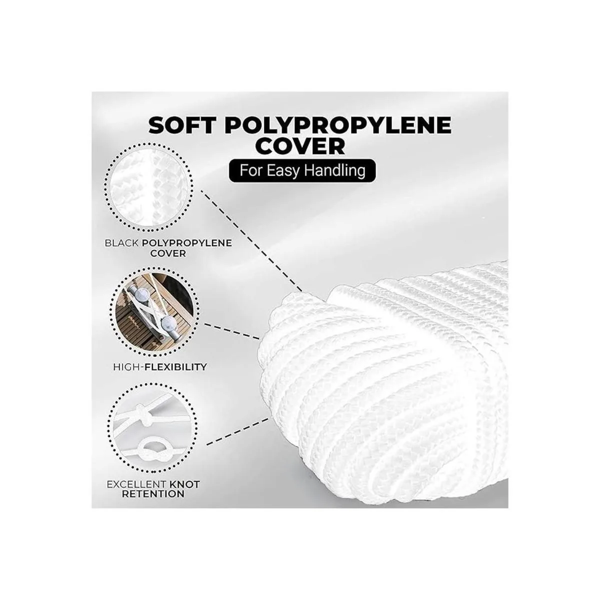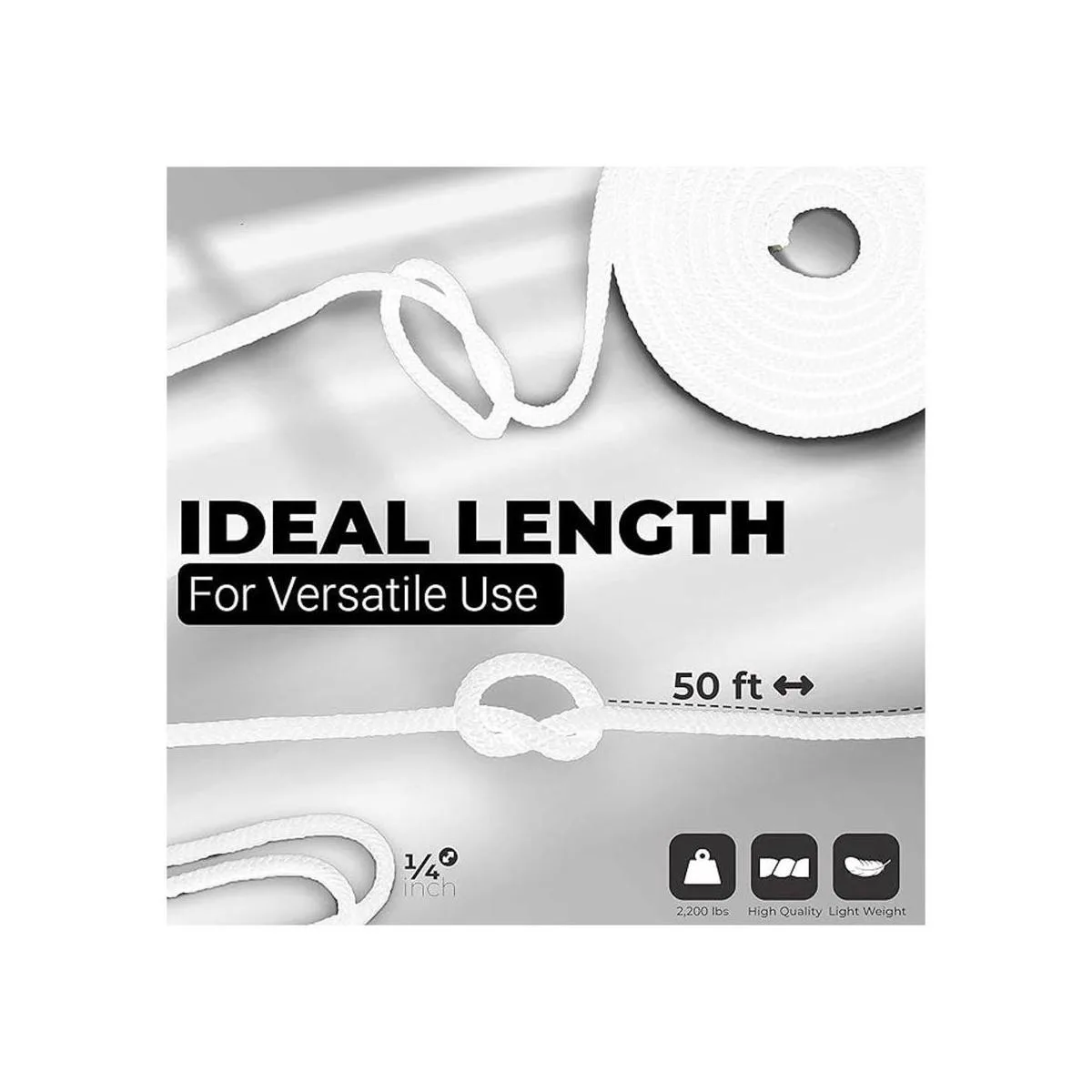 RamPro Cuerda de nailon trenzado de polipropileno de 50 pies, cuerda de mudanza multiusos de 14, excelente absorción de impactos, buena para atar, tirar, columpiar, piscina y nudo, color blanco