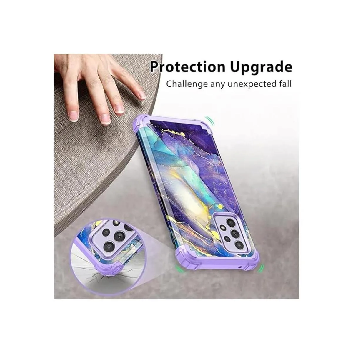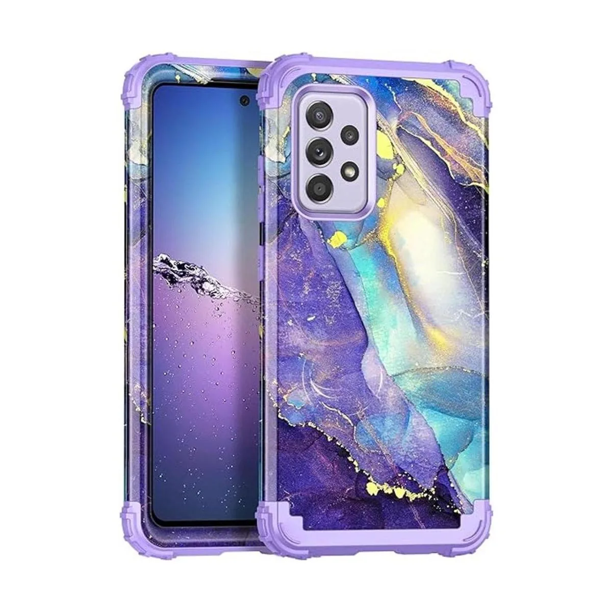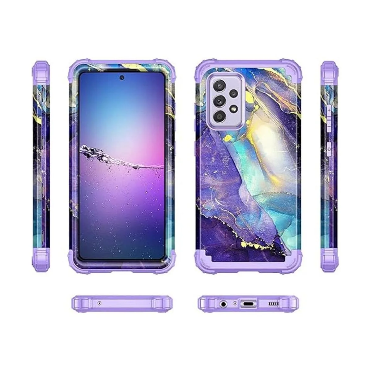 Rancase Funda compatible con Galaxy A52 5G, tres capas de protección resistente a prueba de golpes, parachoques de plástico duro funda protectora de goma de silicona suave para Samsung Galaxy A52 5G, color morado