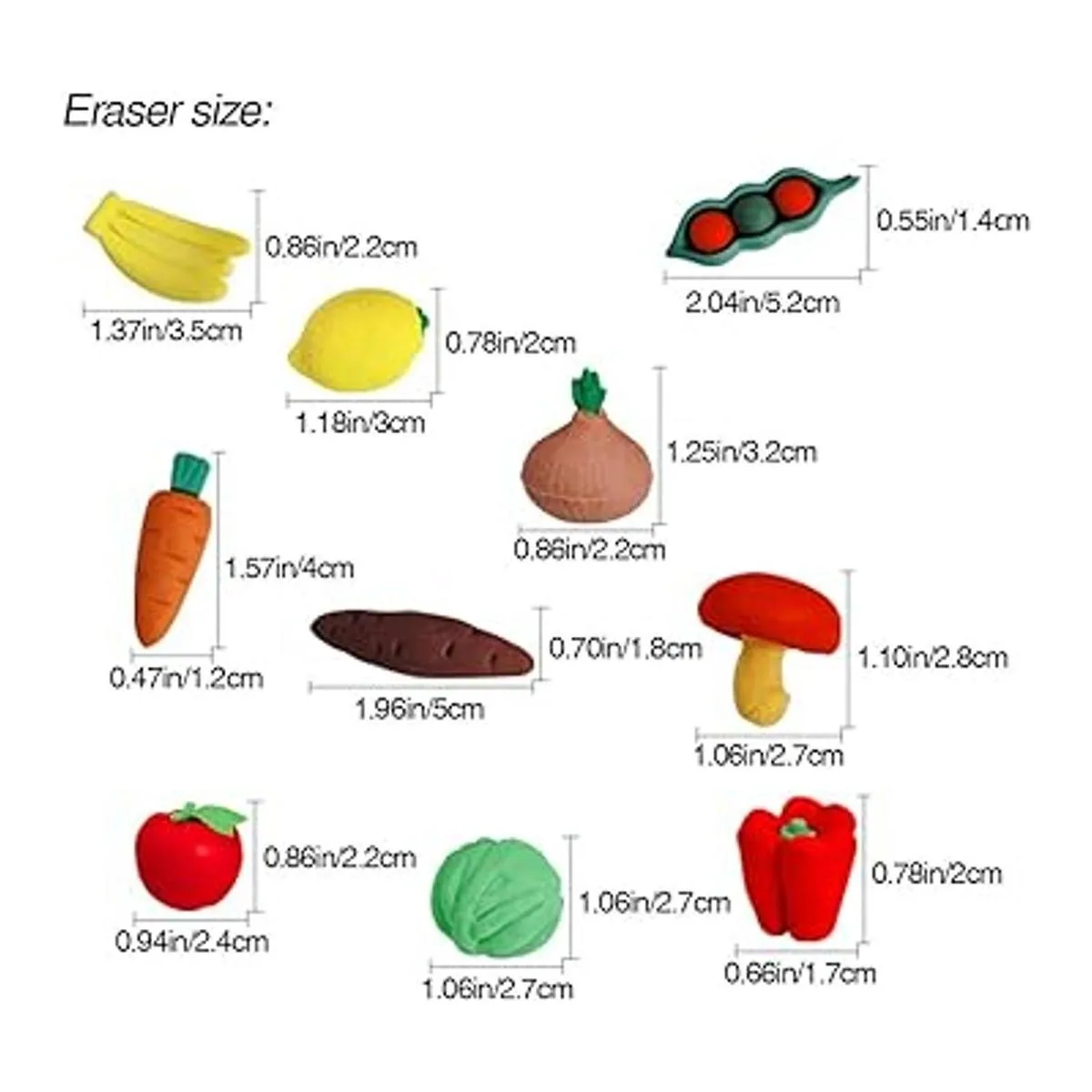 Borrador divertido: el borrador de verduras no solo puede eliminar palabras perdidas, sino que también se puede utilizar para decorar mesas y sofás. Tiene muchos estilos: berenjena, sandía, limón, batata, tomate, manzana, etc. para hacer tus pinturas más interesantes