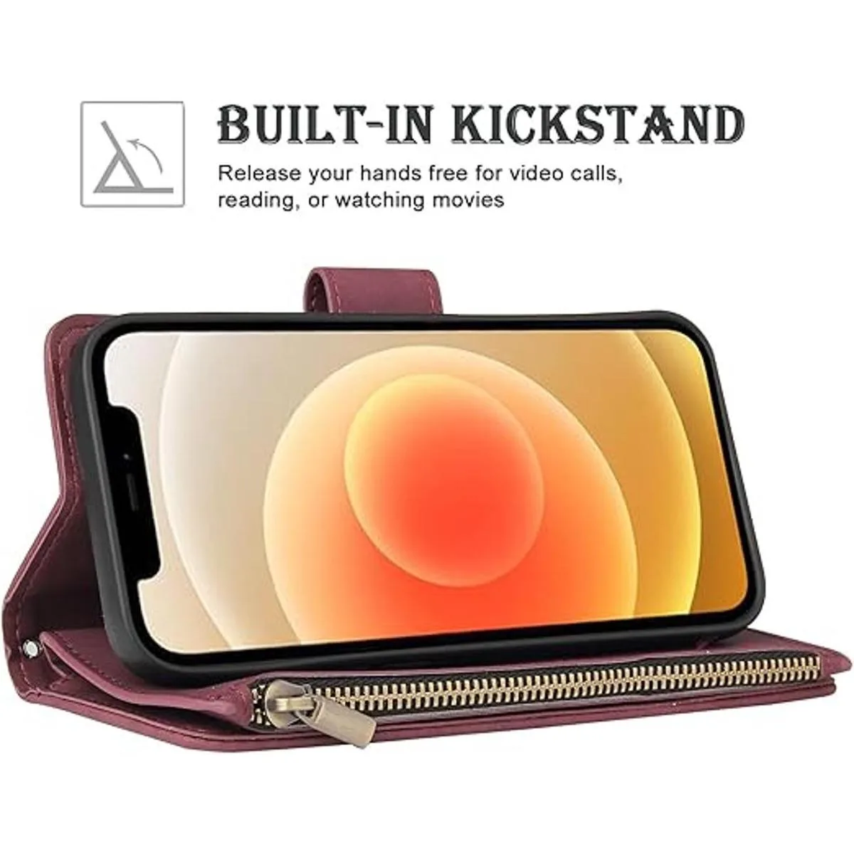 Soporte integrado: soporte estable que te permite hacer videollamadas con manos libres, leer o ver películas, liberar tus manos de trabajo más eficiente. Un cierre magnético elástico ofrece una protección sólida junto con espacio para tu identificación esencial y tarjetas de crédito y teléfono. Una pequeña correa de muñeca es muy conveniente cuando no tienes más manos para llevar tu teléfono.