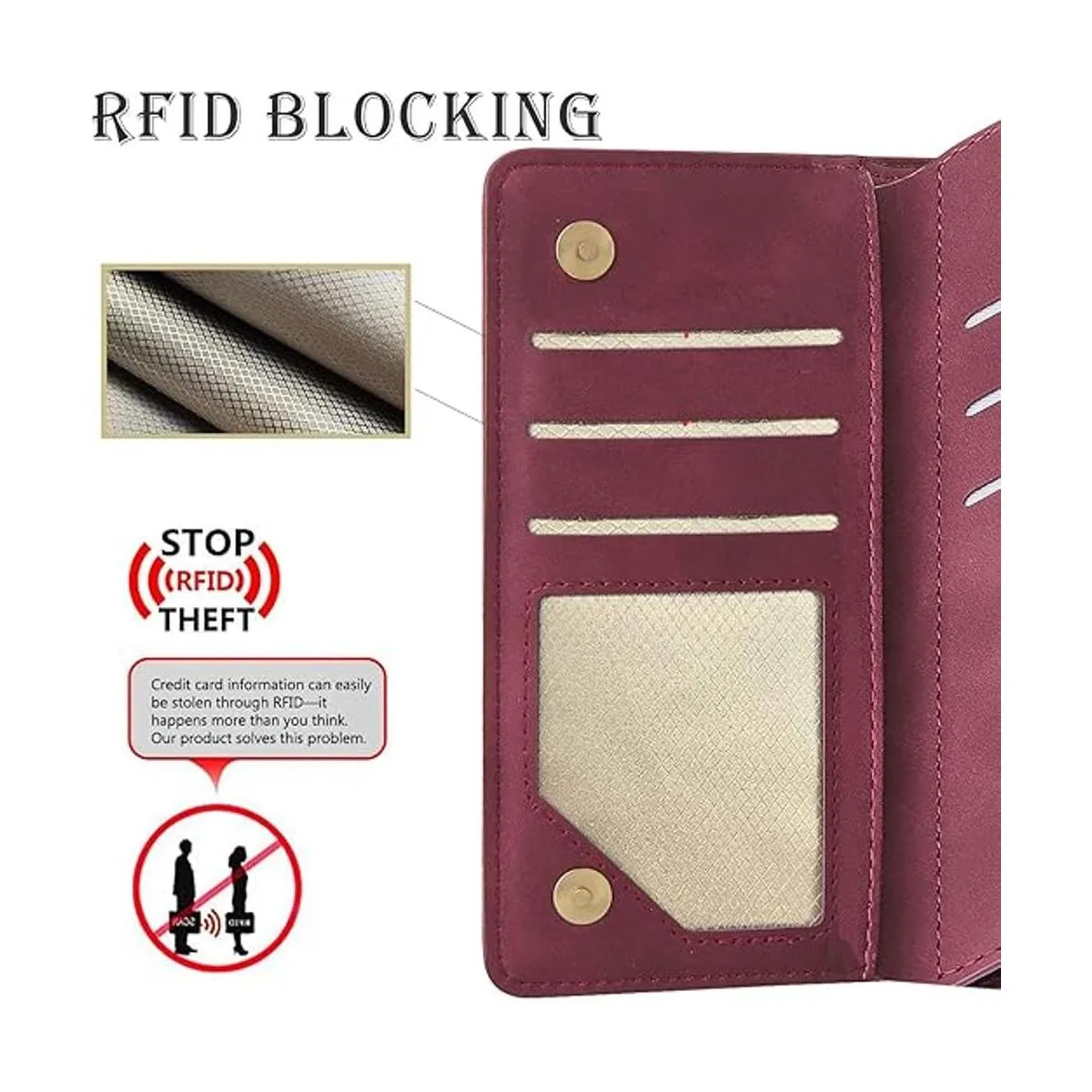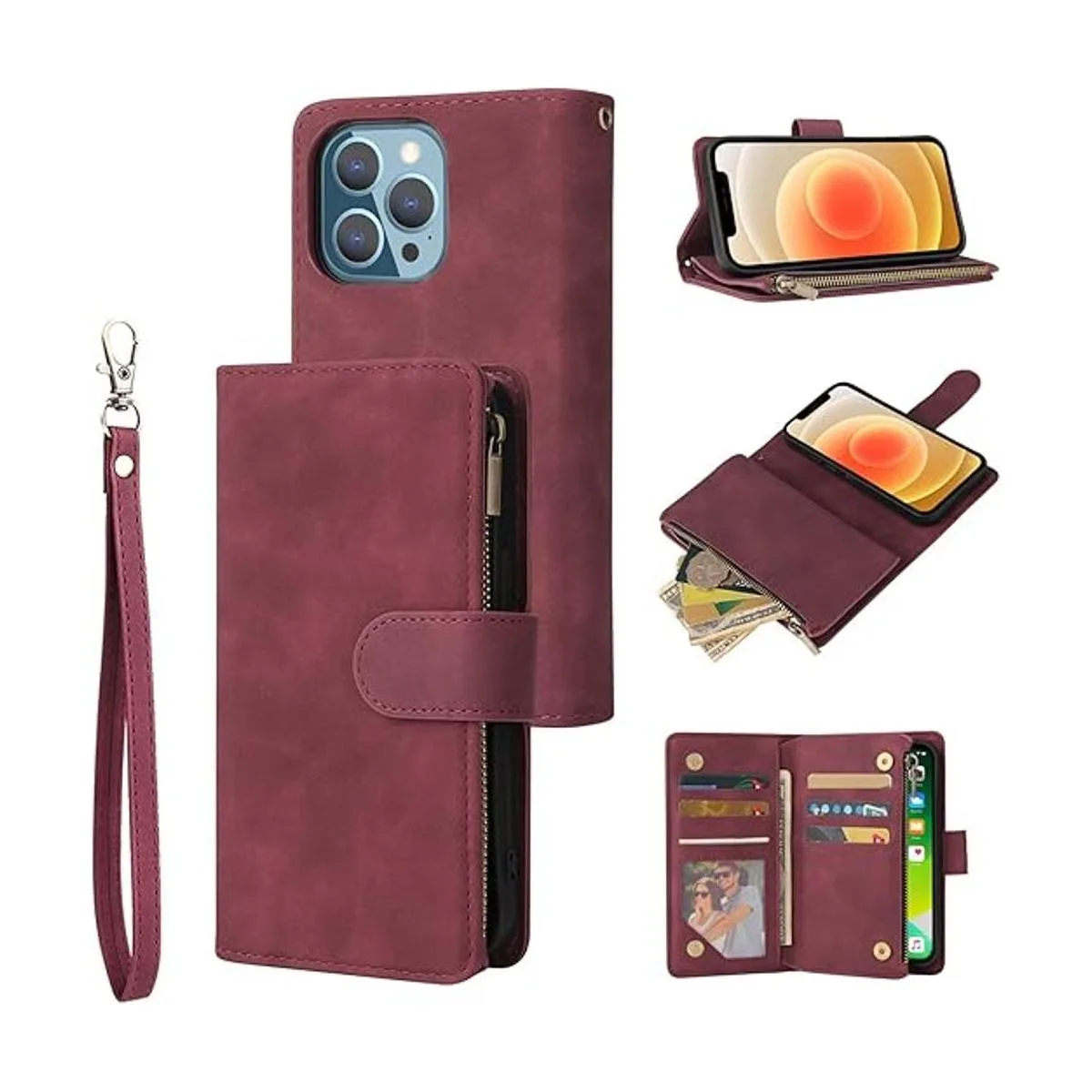 RANYOK Funda tipo cartera compatible con iPhone 13 Pro Max 6.7 pulgadas, piel sintética de alta calidad, con cierre magnético, funda protectora con soporte integrado color vino rojo