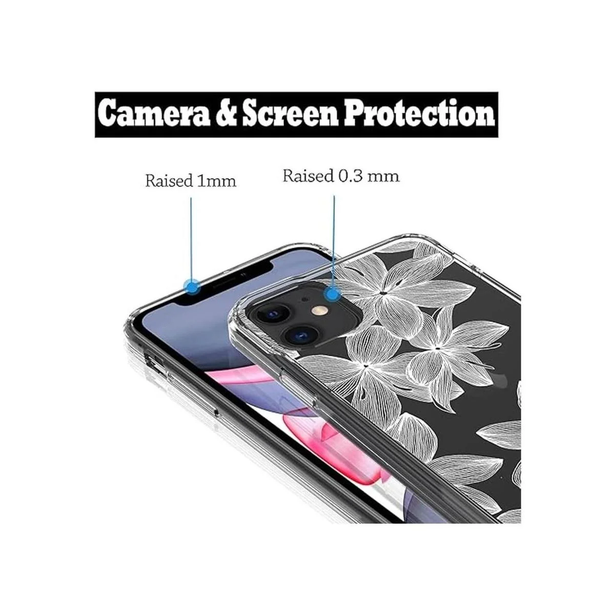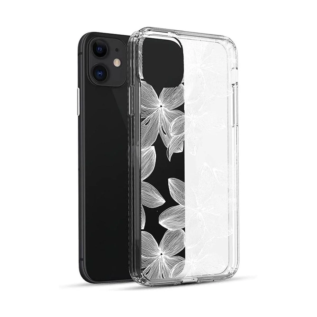 RANZ Funda protectora para iPhone 11, antiarañazos, a prueba de golpes, de policarbonato duro transparente TPU para iPhone 11 6.1 pulgadas, flor blanca