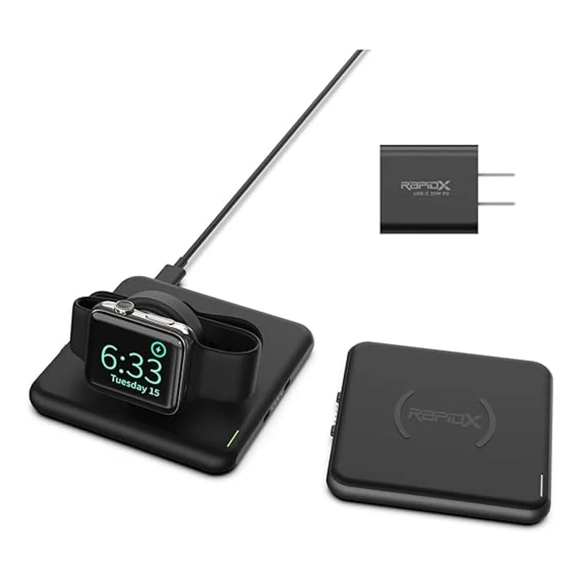 RapidX Modula5 Sistema de carga inalámbrico modular, 1 cápsula de teléfono 1 cápsula de reloj adaptador de 30 W, negro Modelo RXMP03PWA