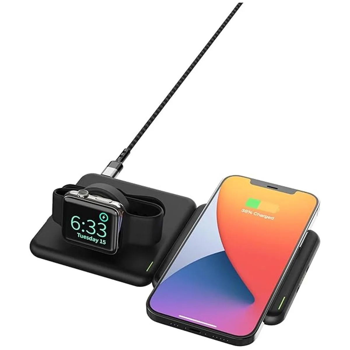Conecta hasta 5 cápsulas de carga a la vez utilizando solo un solo cable. Las cápsulas adicionales para teléfono están disponibles, así como las cápsulas de reloj cable oficial MFI incluido, más próximamente Si estás cargando 3 o más dispositivos móviles, debes utilizar un adaptador de corriente de 65 W para la mejor experiencia.