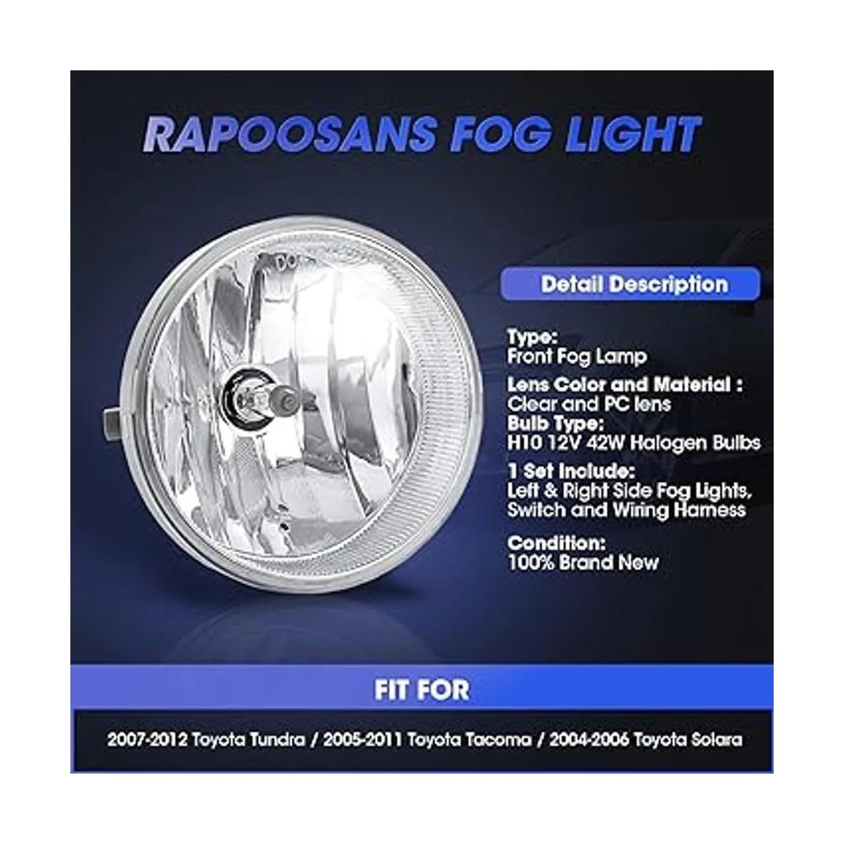 RAPOOSANS Kit de montaje de luces antiniebla para conducción Toyota Tacoma 20052011 Tundra 20072012 20042006 Solara reemplazo de luz antiniebla con interruptor de bombillas H10 de 12 V 42 W y kit de cableado