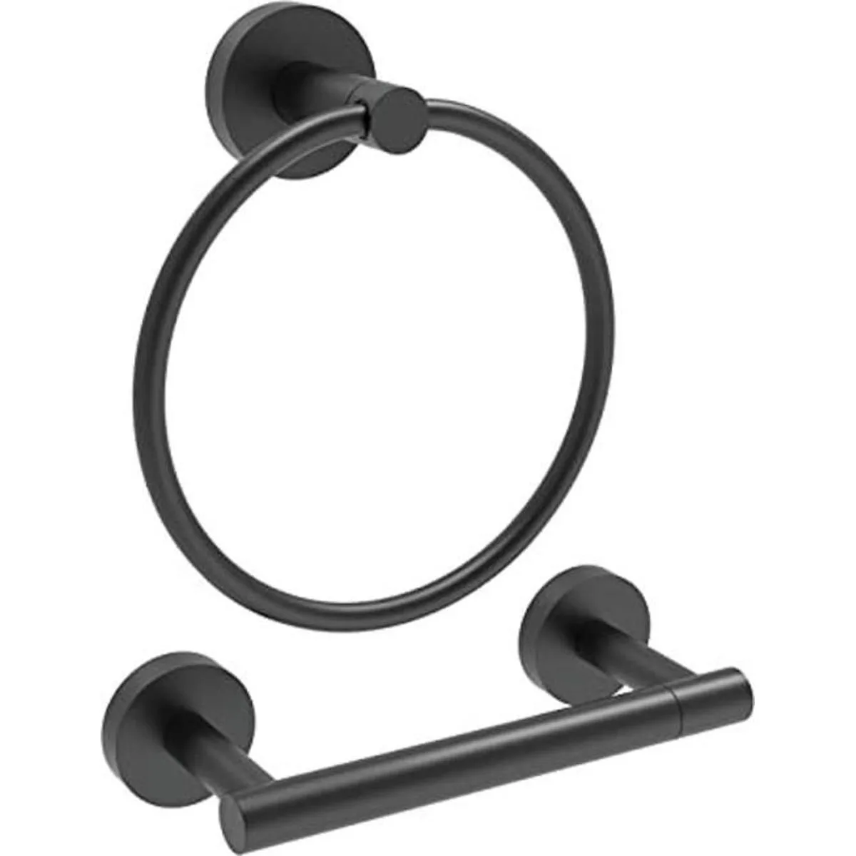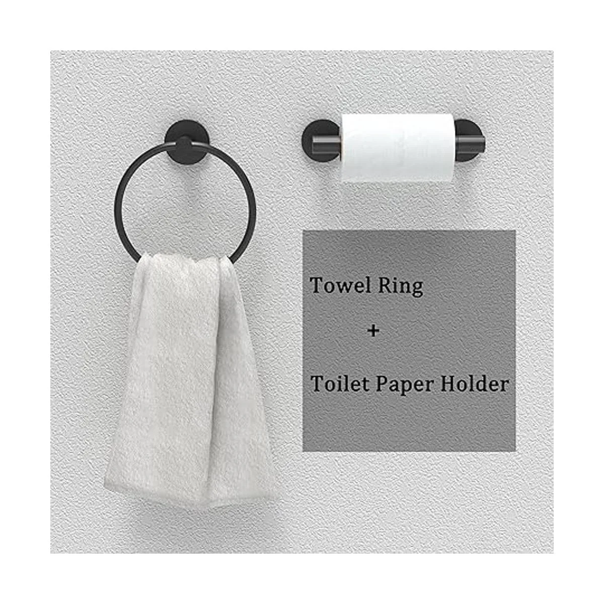 RARXTR Soporte de papel higiénico negro mate y anillo de toalla SUS304 juego de accesorios de baño de acero inoxidable de 2 piezas con soporte de rollo de papel higiénico giratorio de doble poste para montaje en pared y juego de toallas de baño.