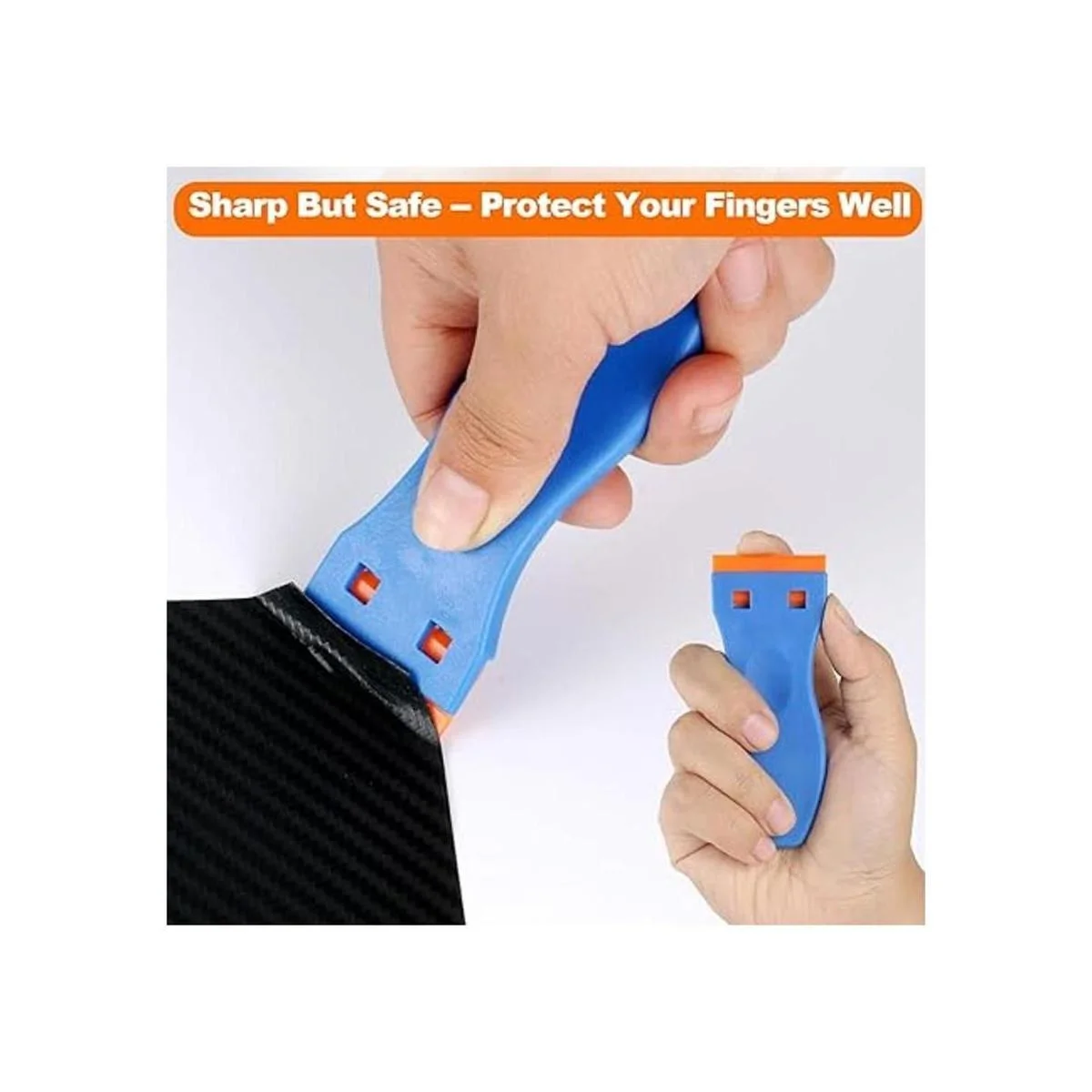 Herramienta de limpieza segura: dos ranuras en la parte posterior del raspador de hoja sujetan de forma segura las cuchillas de plástico para garantizar que la hoja no se deslice. La hoja de plástico es afilada pero segura, no te preocupes por que este raspador multiherramienta corte tus dedos mientras trabajas