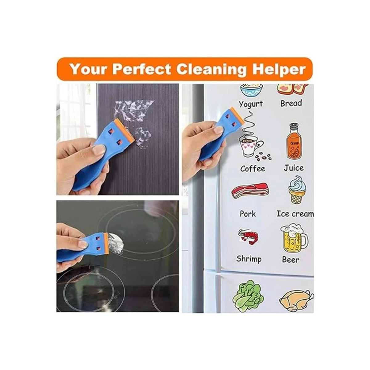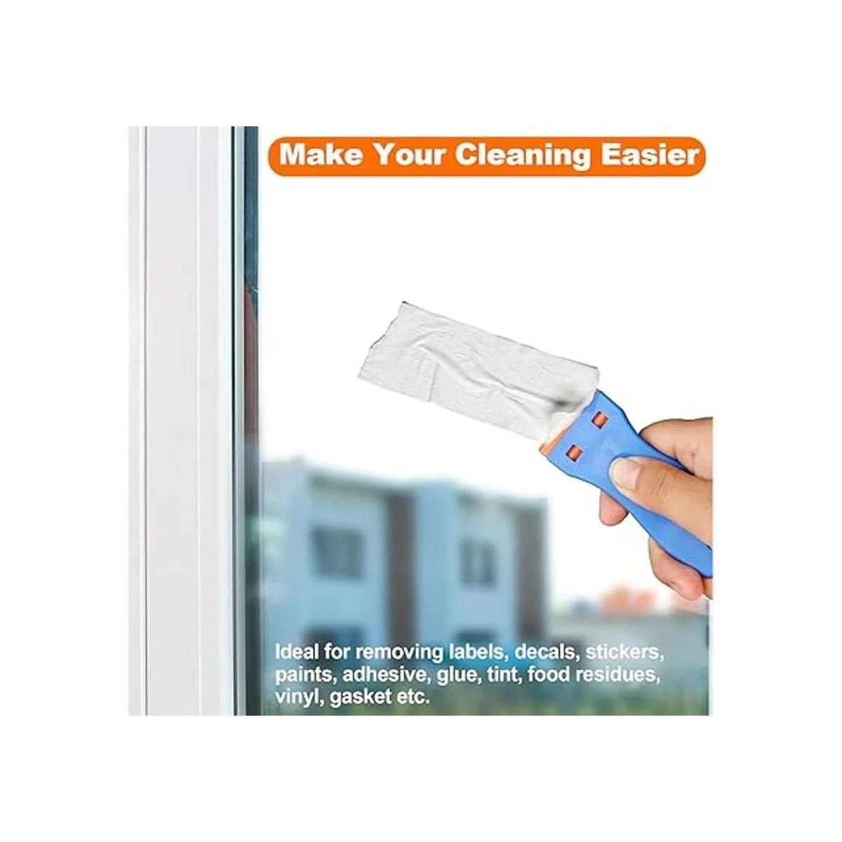 Rascador de limpieza multiusos: esta herramienta raspadora de calcomanías es ideal para quitar calcomanías, calcomanías, tintes, etiquetas de ventanas, coches, caravanas, paredes, azulejos, suelos, pintura, madera y vidrio. También puede eliminar los residuos de alimentos del horno, la cocina y la estufa de vidrio