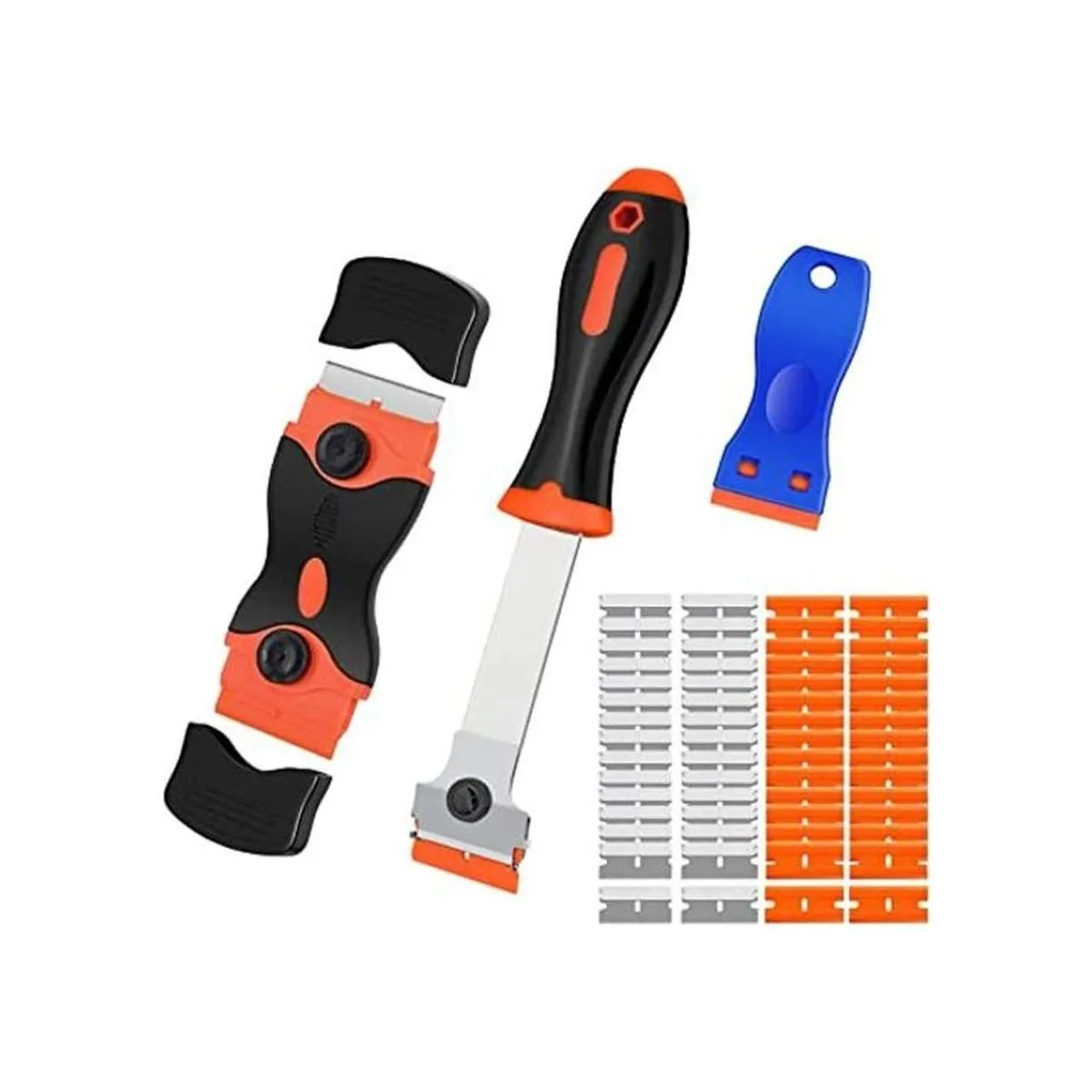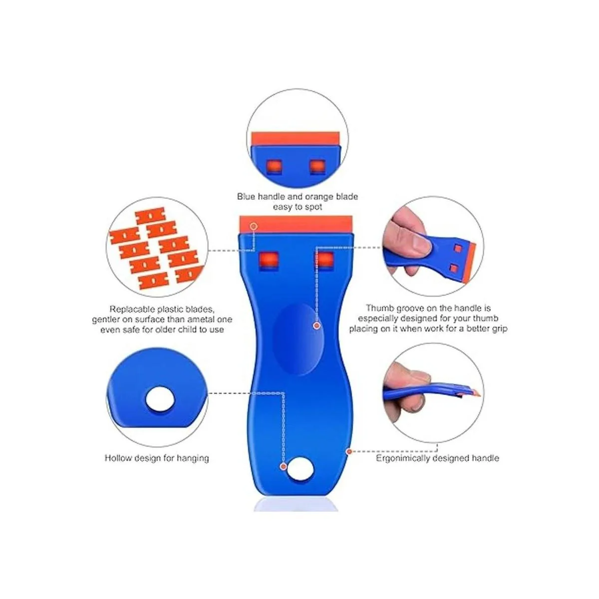 Raspador de cuchillas de afeitar, paquete de 3 herramientas de raspador con 50 cuchillas de plástico y 30 cuchillas de afeitar de metal, raspador de limpieza, para quitar etiquetas, calcomanías de registro, tinte, grasa del parabrisas, electrodomésticos, vidrio