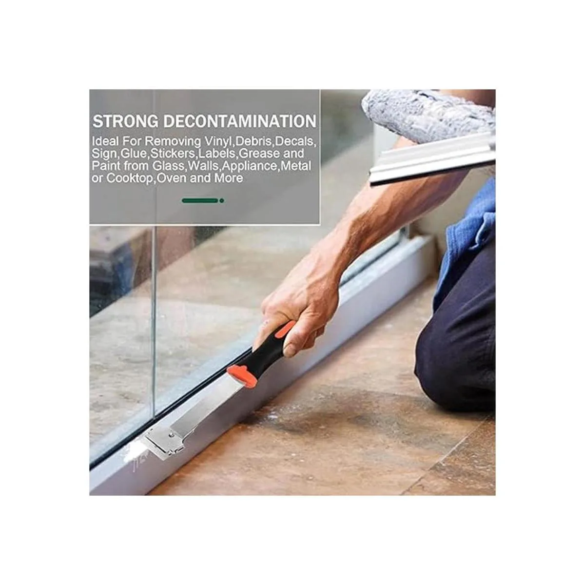 Herramienta raspadora multifuncional: uno es un raspador de mango largo resistente, que es perfecto para trabajar en lugares difíciles de alcanzar. Una es una herramienta raspadora con cuchillas de afeitar de metal y plástico, adopta un diseño ergonómico curvado y antideslizante, fácil de agarrar, lo que te permite quitar las pegatinas de la ventana del coche y raspar etiquetas del contenedor y mucho más.